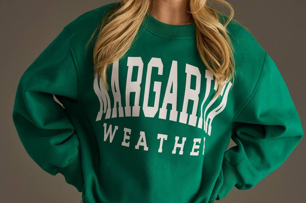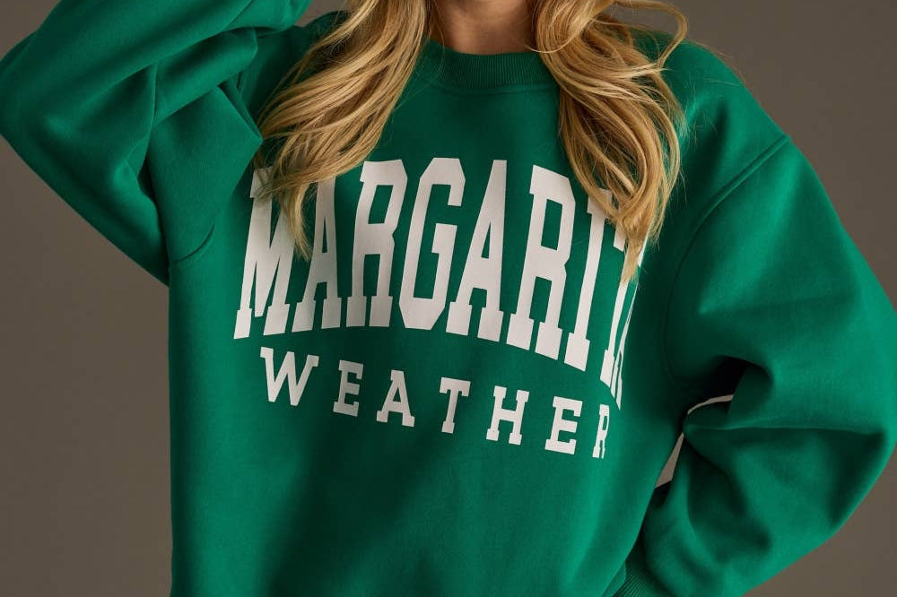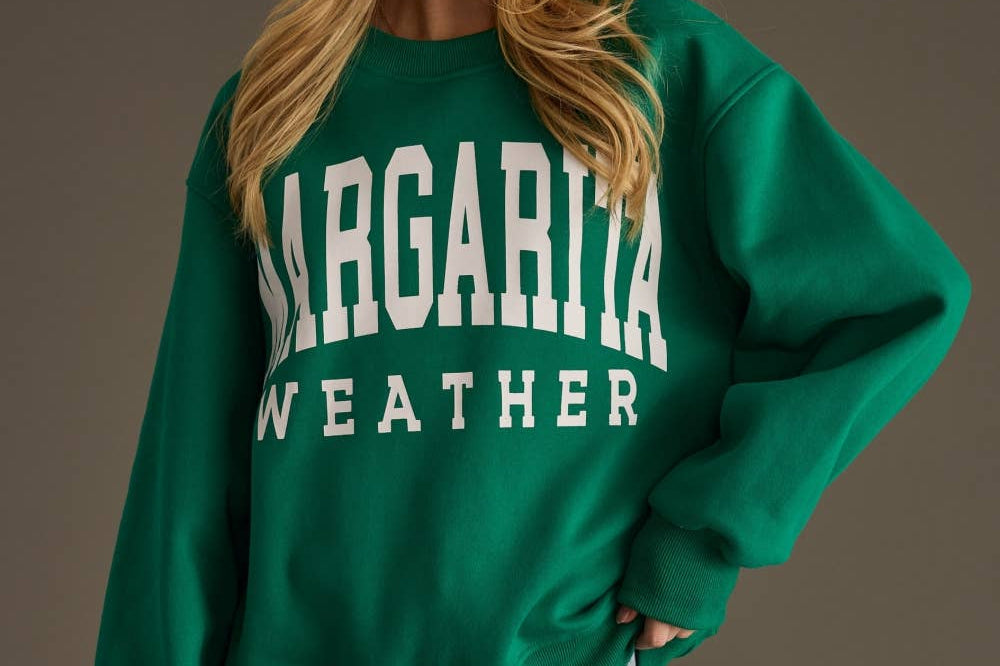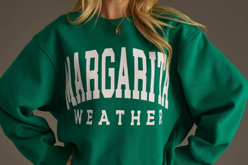 - The front is creatively embellished with the word "Margarita" in an applique technique, adding a fun and tropical touch.