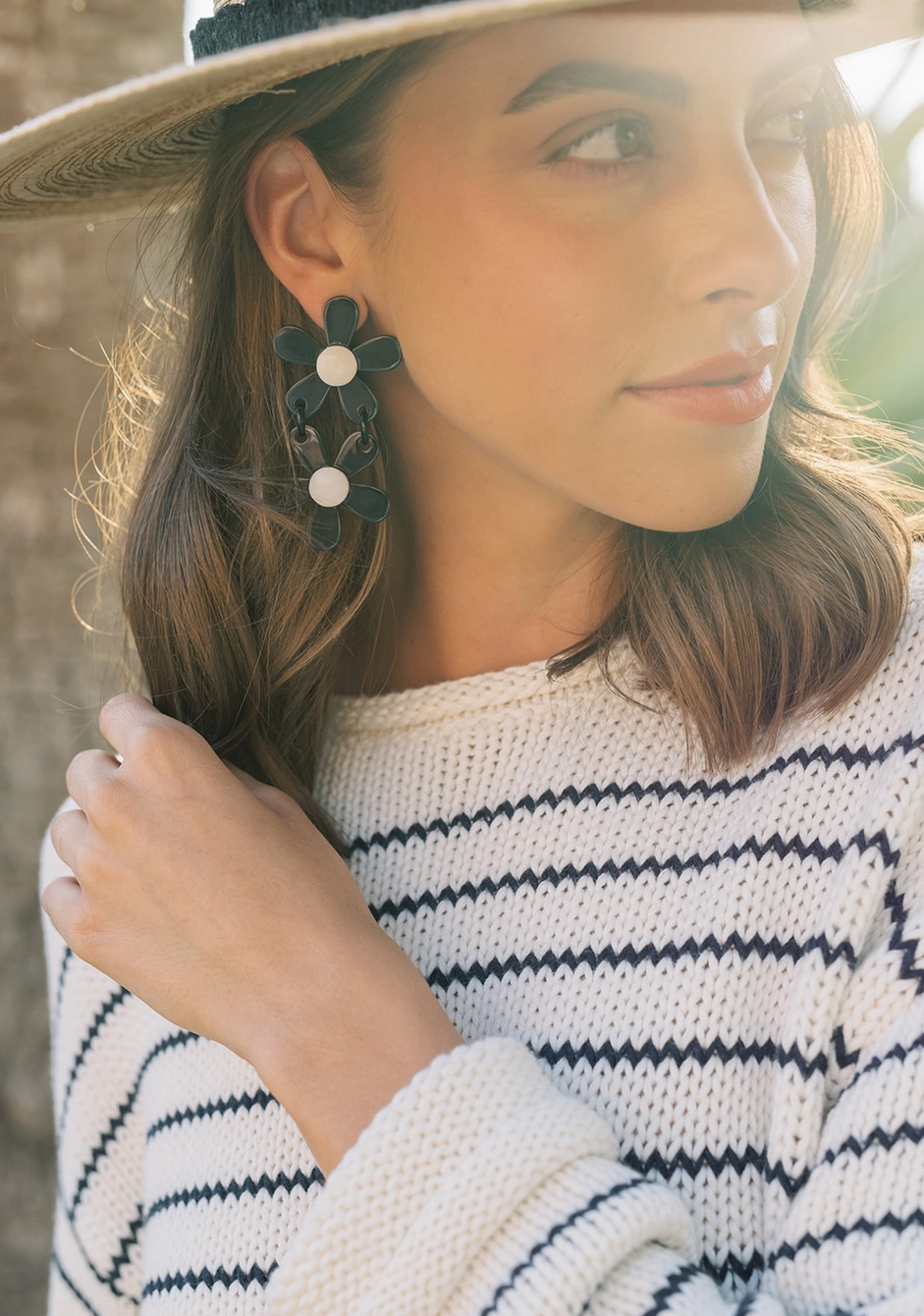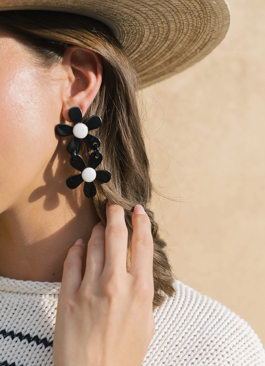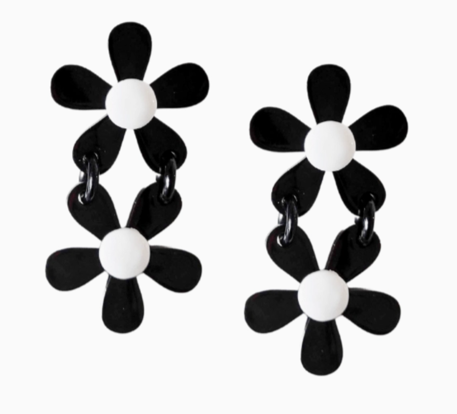 Stacked Black Floral Earrings