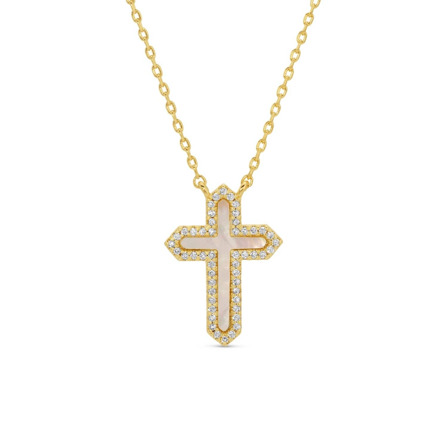 Shell Pave Cross Necklace