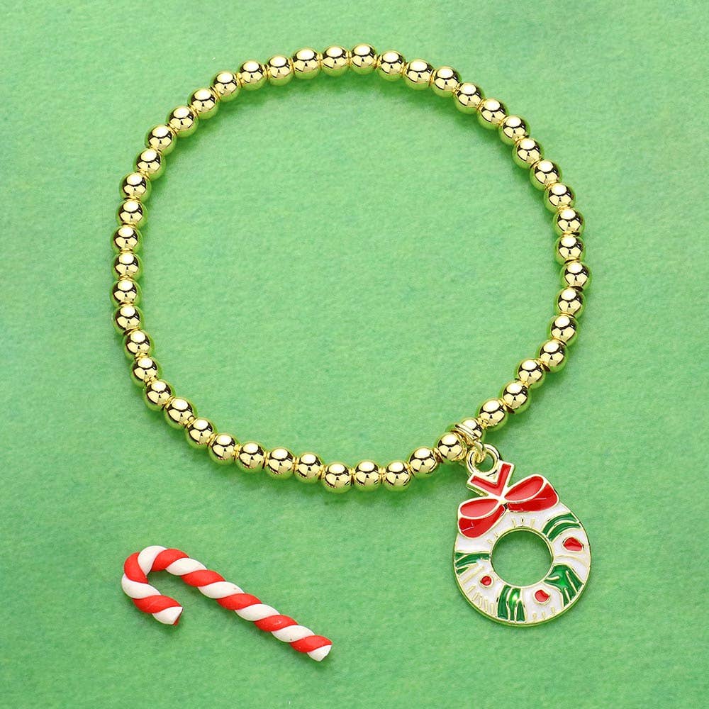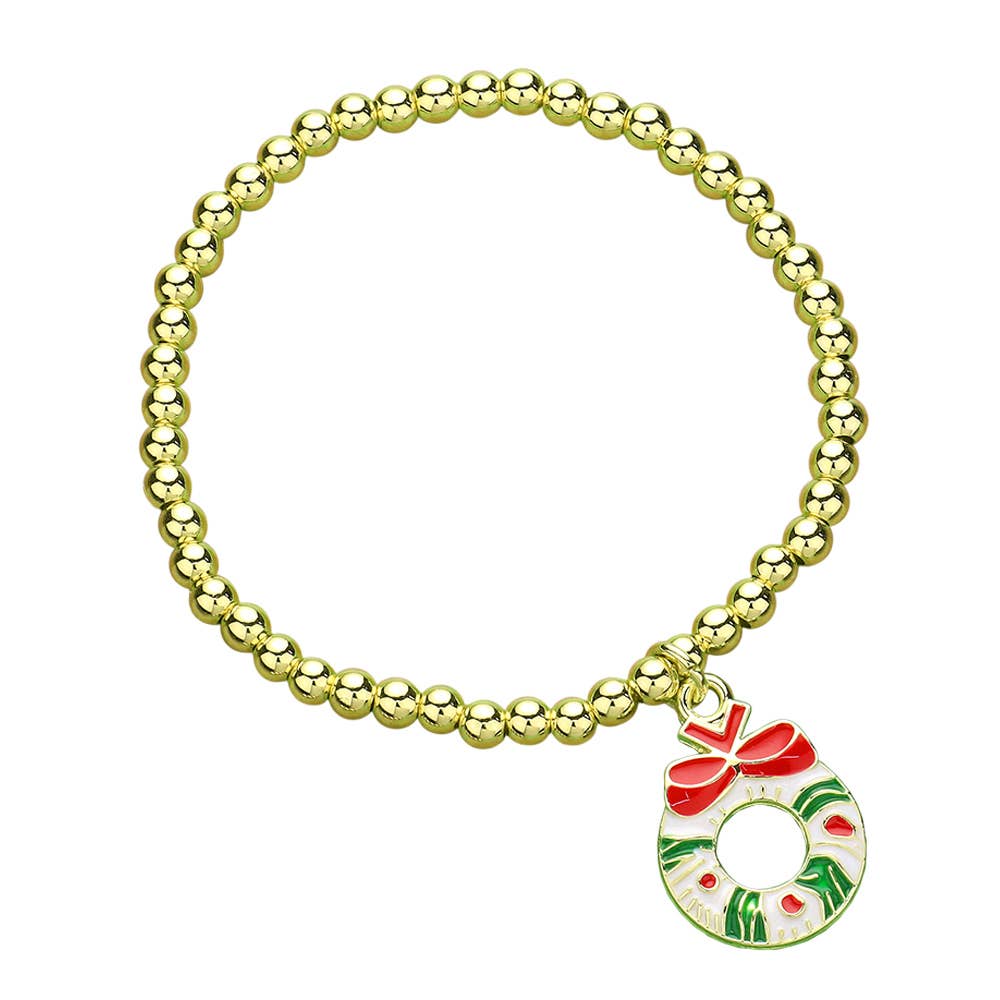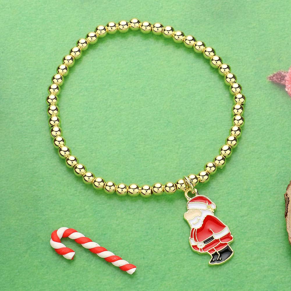 Christmas Stretch Gold Bead Bracelets
