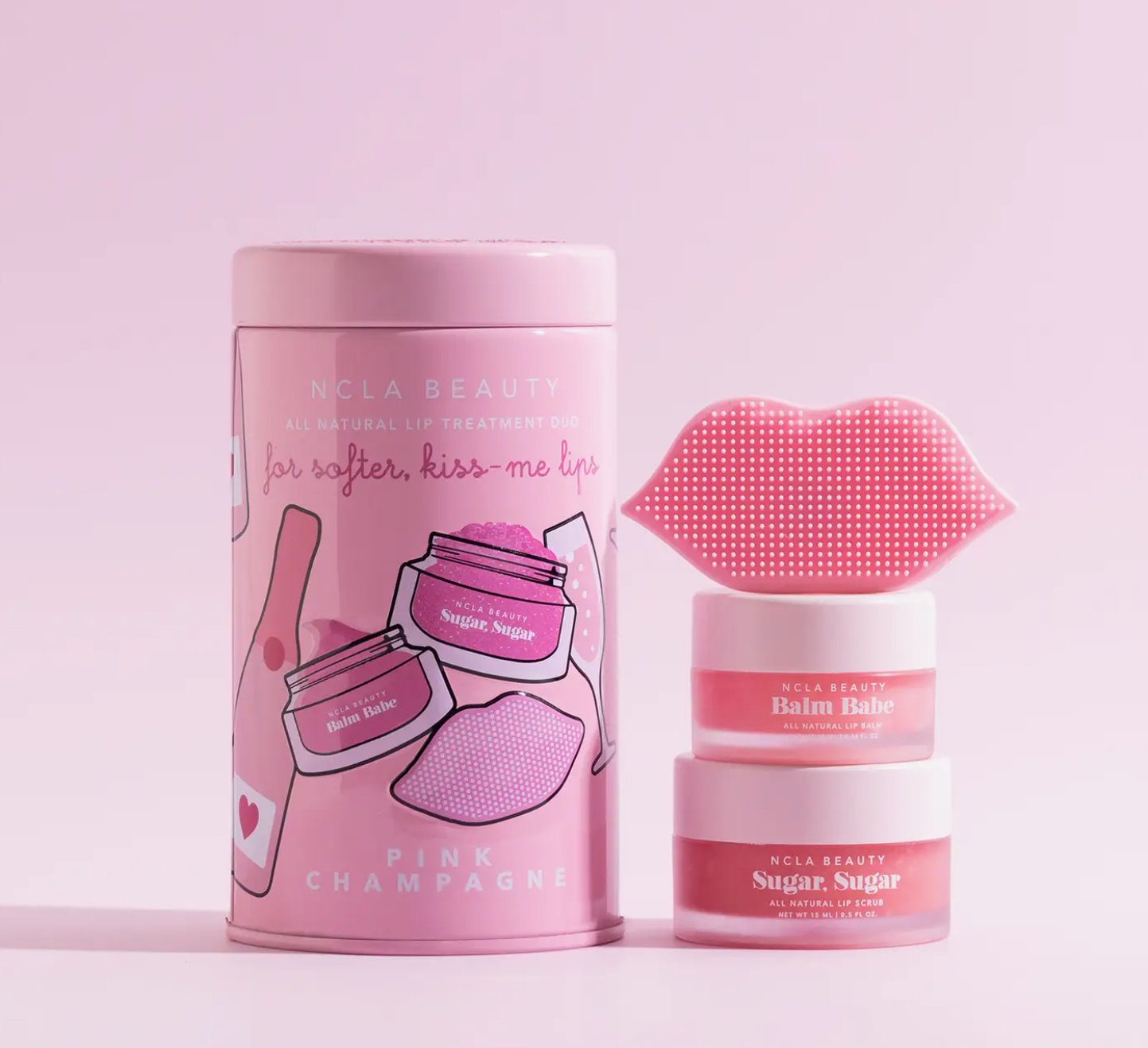 You’ll be coming back for seconds! An intense, natural and vegan lip treatment duo in three delicious scents. Sugar, Sugar lip scrub gently exfoliates, hydrates and brightens, while Balm Babe lip balm intensely soothes and nourishes lips. Each set comes with a silicone lip scrubber for use with Sugar Sugar lip scrub.