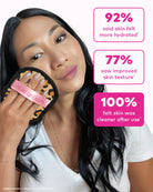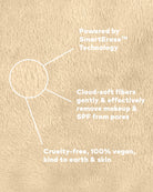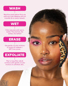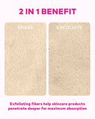 Erase all makeup with JUST WATER™ including waterproof. Our patented, water-activated makeup remover uses cloud-soft fibers to gently & easily remove all cosmetics & sunscreen from pores. 2 in 1 benefit: one side removes makeup & one side exfoliates.