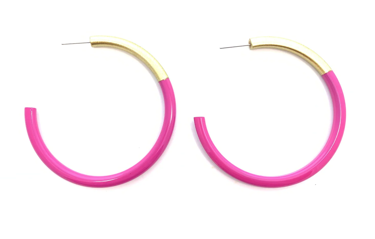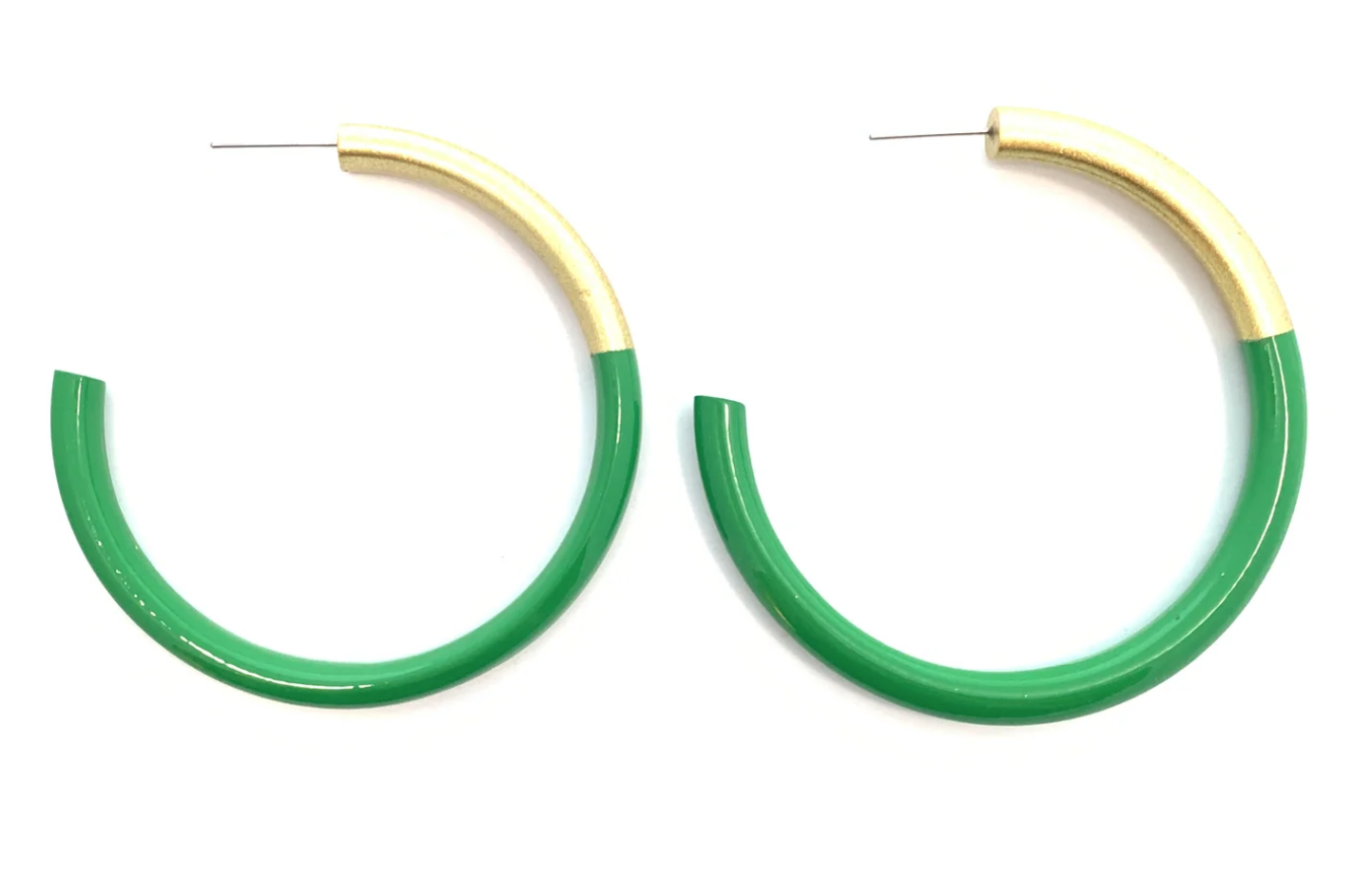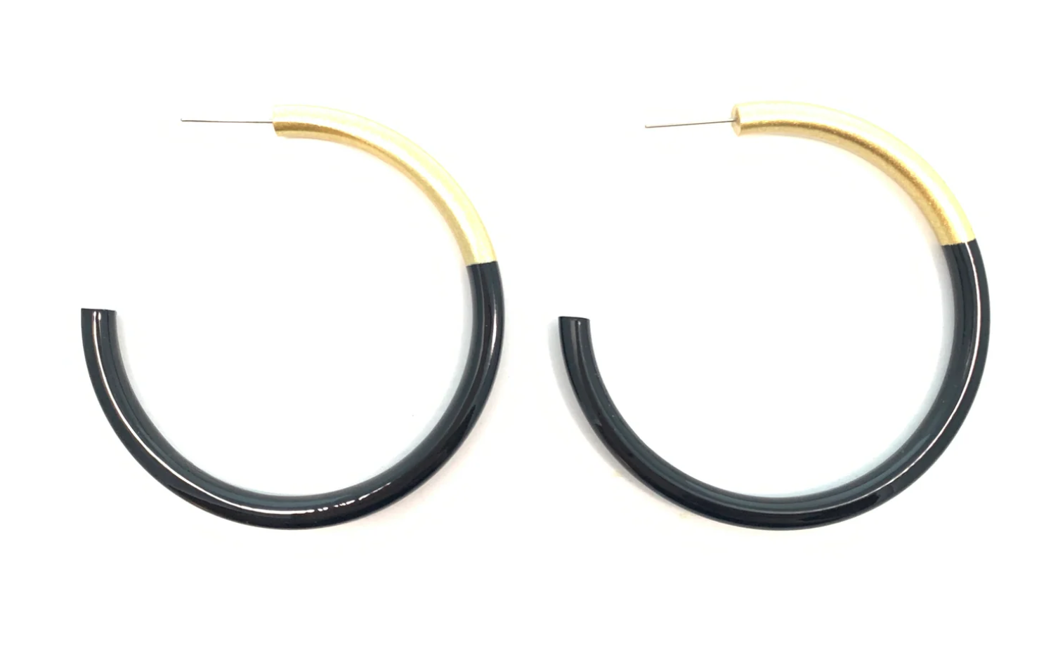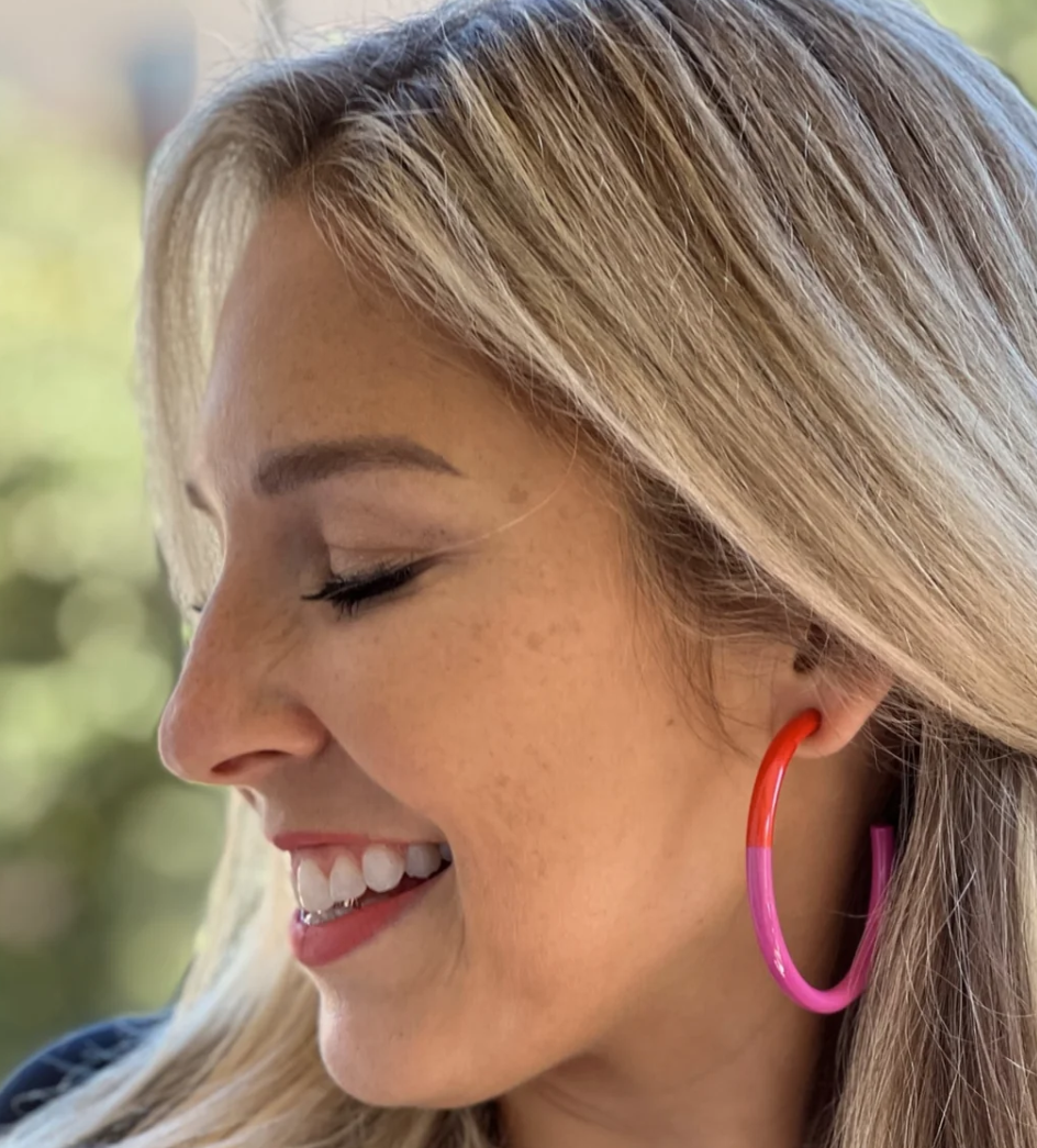 These colorful and LIGHTWEIGHT Large Hoops will elevate all outfits for the spring and summer! Pair with coordinating bangles for a fun, sophisticated and modern look. All earrings have color combined with gold accent. Each earring is unique and made by skilled artisans.