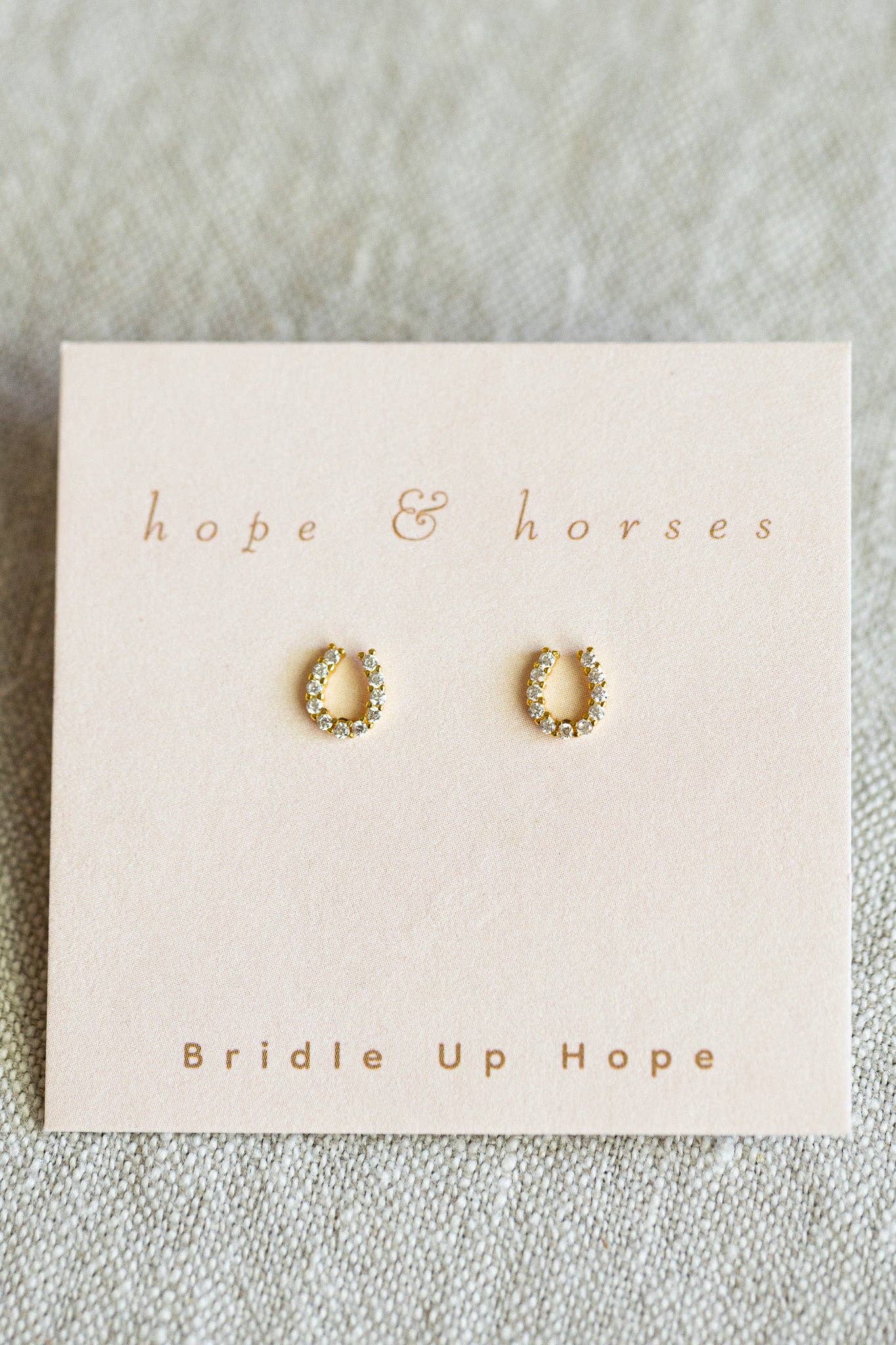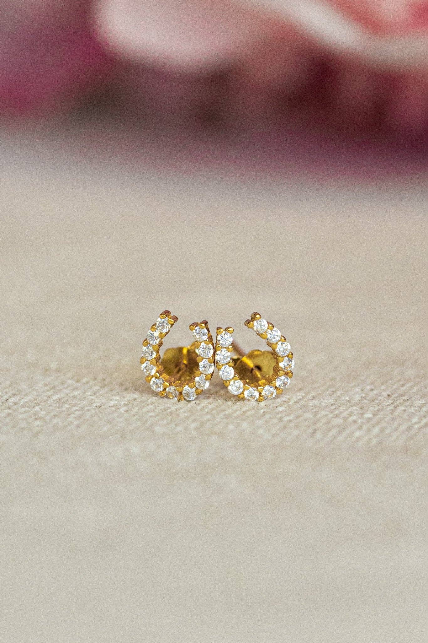 *18K gold plated * Horseshoe is .5" tall * Rhinestone detailing for a sparkling finish * Lightweight and comfortable for all-day wear