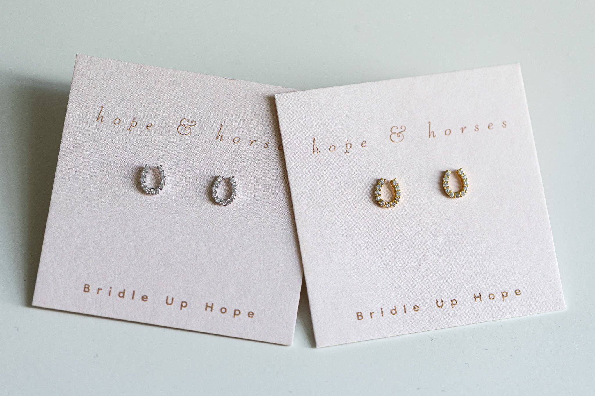 These dazzling horseshoe stud earrings, with shimmering rhinestones, symbolize luck, strength and timeless cowgirl charm!
