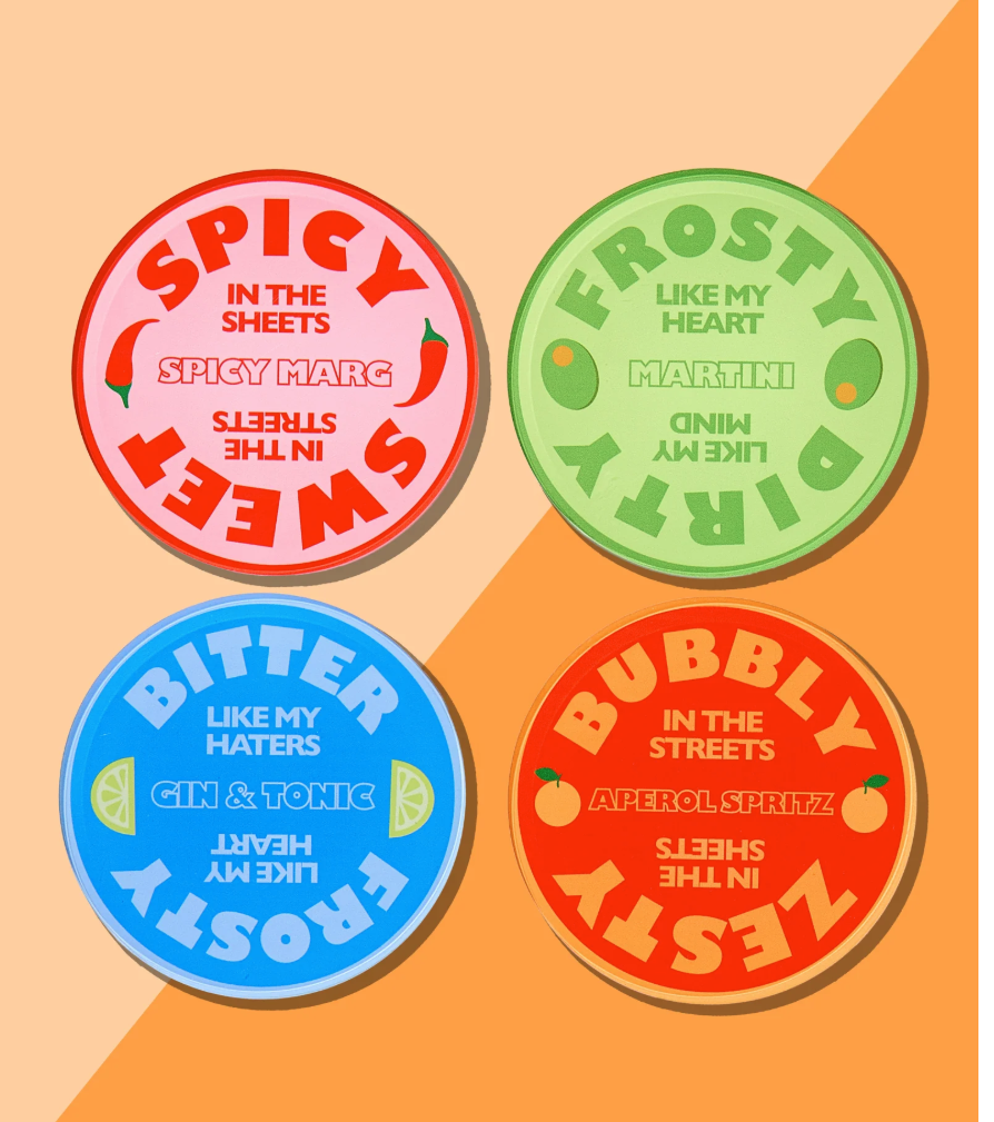 Cheers to all of your favorite drinks! These cocktail coasters are perfect for protecting your surfaces while sipping on your cocktail! Each coaster has a design on the front and the back- double the designs= double the fun! Drink up!