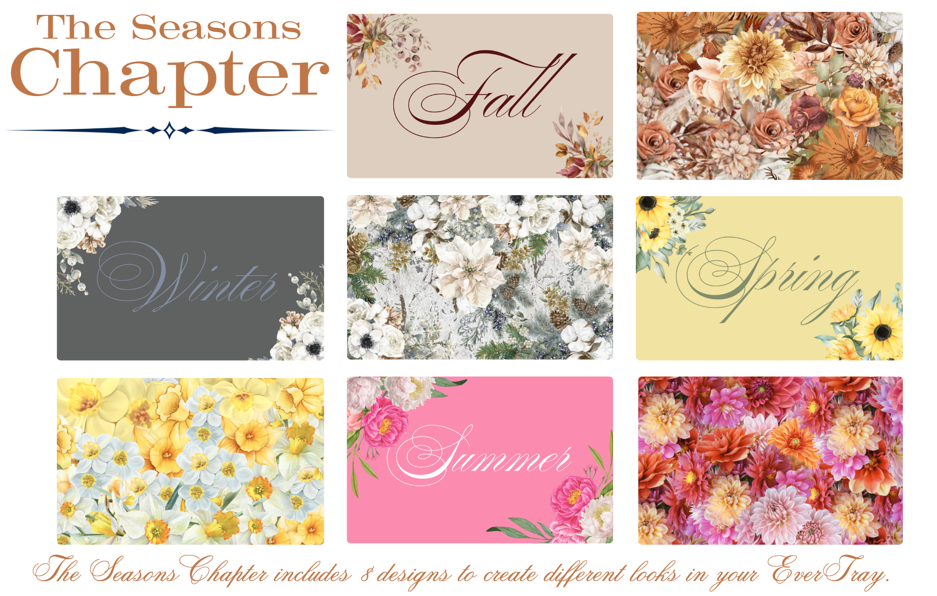 Seasons Floral Chapters | Year-Round Room Decor | Acrylic Tray Inserts