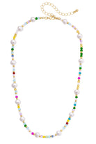 Playful meets polished in our Georgia Pearl & Rainbow Beaded Necklace. Featuring a vibrant mix of rainbow-hued beads paired with classic pearls, this multicolor strand brings an effortless pop of color with a touch of timeless charm. Easy to layer or wear solo, it’s the perfect piece for adding a cheerful, elevated accent to everyday looks, weekend outfits, or game day style. Bright, fun, and endlessly versatile, this necklace is made to stand out—no matter the season.