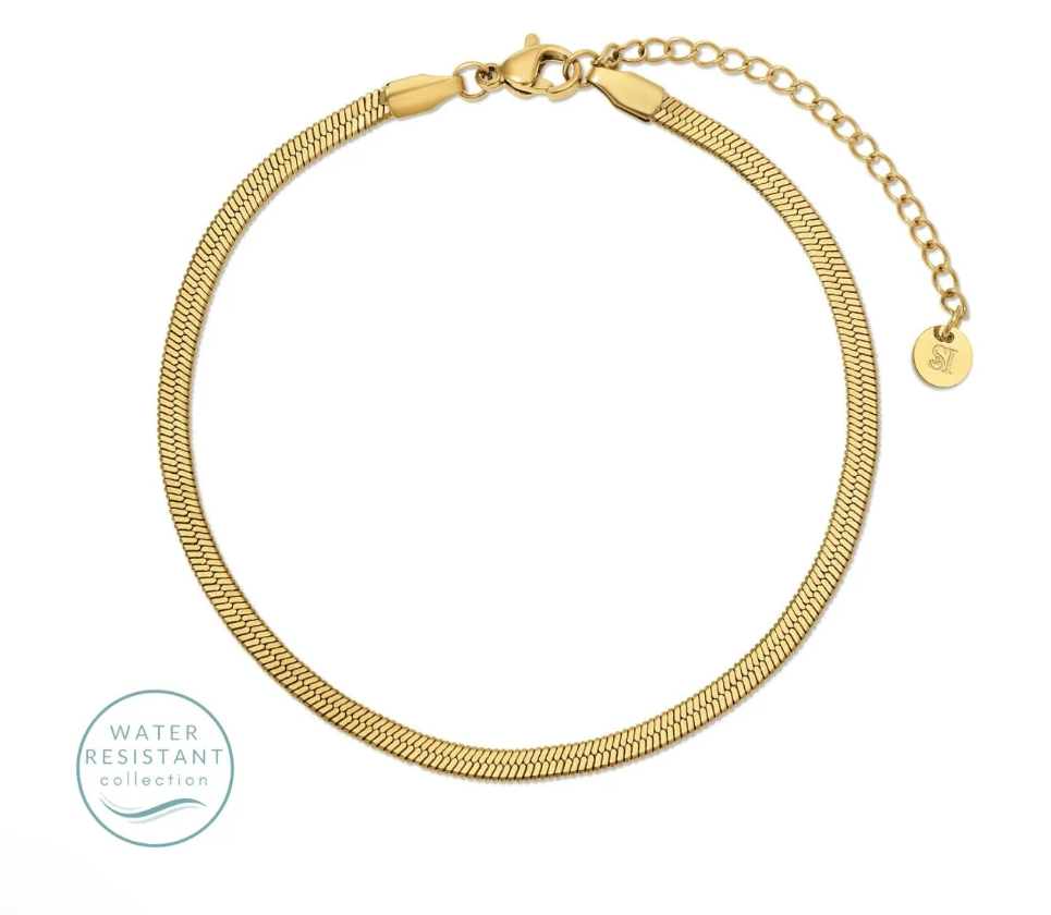 Elevate your everyday style with the Snake Chain Anklet, a sleek essential designed for effortless sophistication. Crafted from stainless steel and finished with radiant 18K gold plating, this water resistant anklet features a smooth, flexible snake chain that lays flat against the skin for a polished, modern look. Perfect for daily wear, beach days, or layering with other anklets, it offers both comfort and lasting shine. Timeless and versatile, this gold snake chain anklet is a must have staple for any contemporary jewelry collection.roduct Details