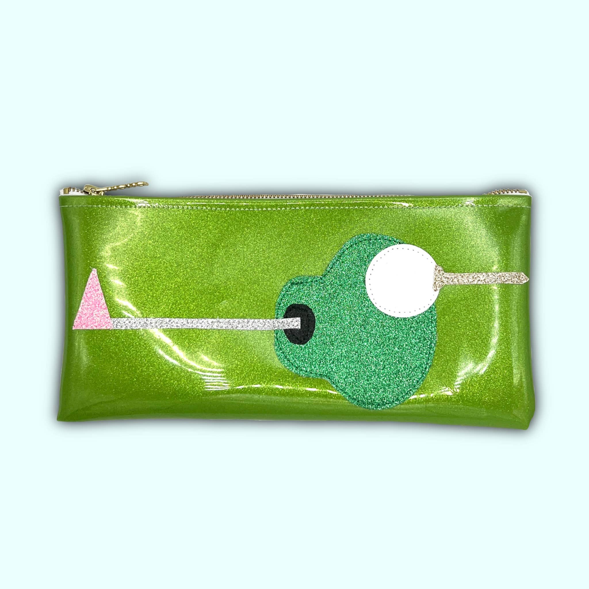 Product Highlights: 📏 Dimensions: 11" x 5.5" – roomy for on-the-go essentials! 🔒 Zipper: 11" XOXO brass zipper for a secure closure! 💖 Material: Glitter-infused vinyl that's easy to sanitize & disinfect! ⛳ Design: Features glittery golf-themed appliques for a sporty-chic look! ❤️ Handmade: Designed & crafted in Brooklyn, NY!