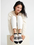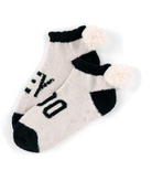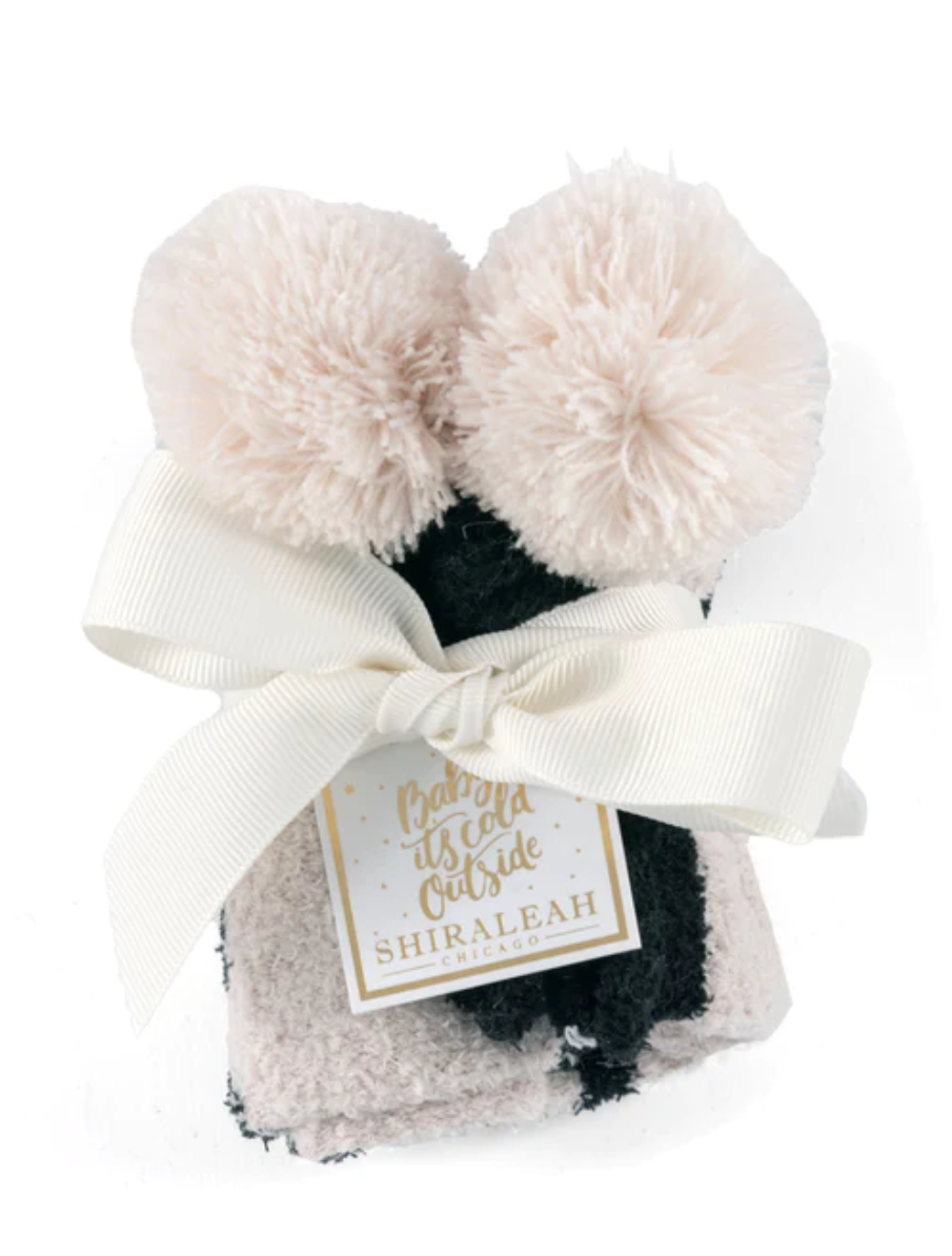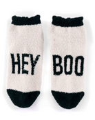 Fuzzy comfort meets polished style in HEY BOO Socks. These socks feature a fuzzy texture, pompom heel detail, and have a unique feminine flair with its fun HEY BOO on top of socks. These socks have a rubber grip bottom and are packaged ribbon wrapped making them the perfect gift option.