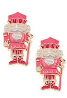 Tiny nutcrackers in festive enamel bring whimsical charm. A fun nod to a holiday tradition. DETAILS: 18K Triple Gold Plated 1.25"L x 0.625"W