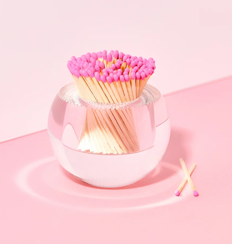 Get fired up with our Acrylic Match Striker! This acrylic match strike is the perfect accessory for your coffee table, desk, or any space that could use a little flair. It features a strike pad on the bottom and comes with 140 matches. Keep this baby ready for any occasion, let's get lit! - 3.5'' Diam x 3'' H - Includes 140 matches