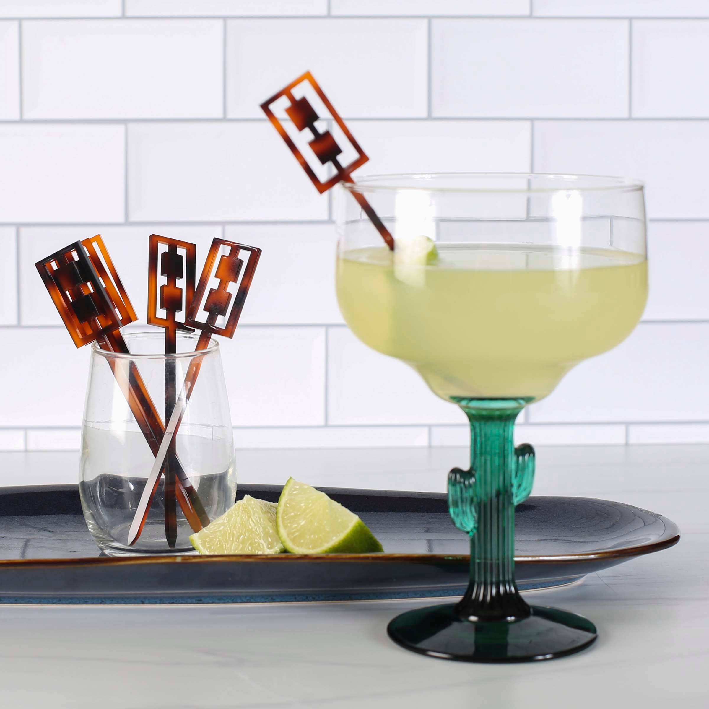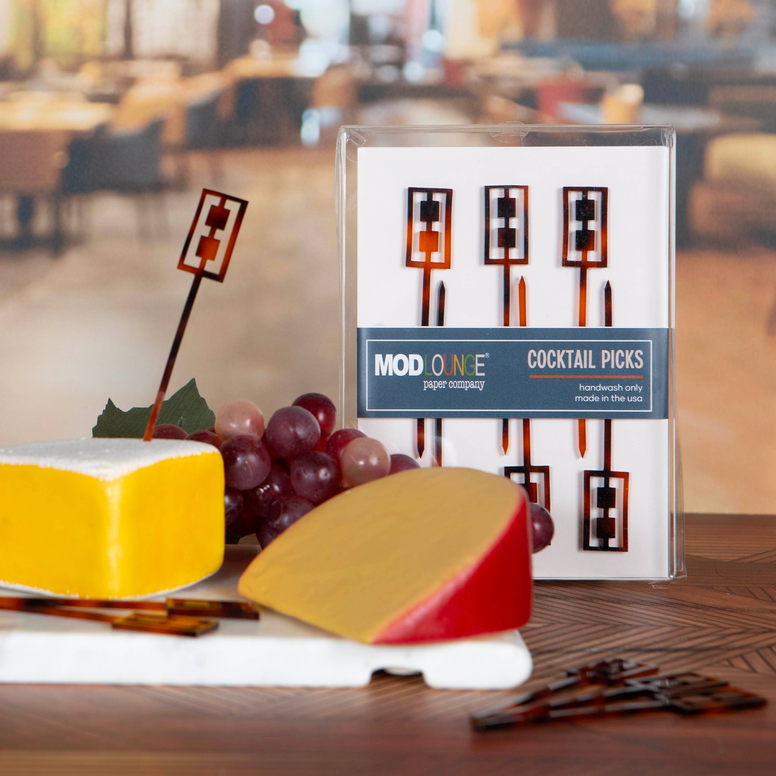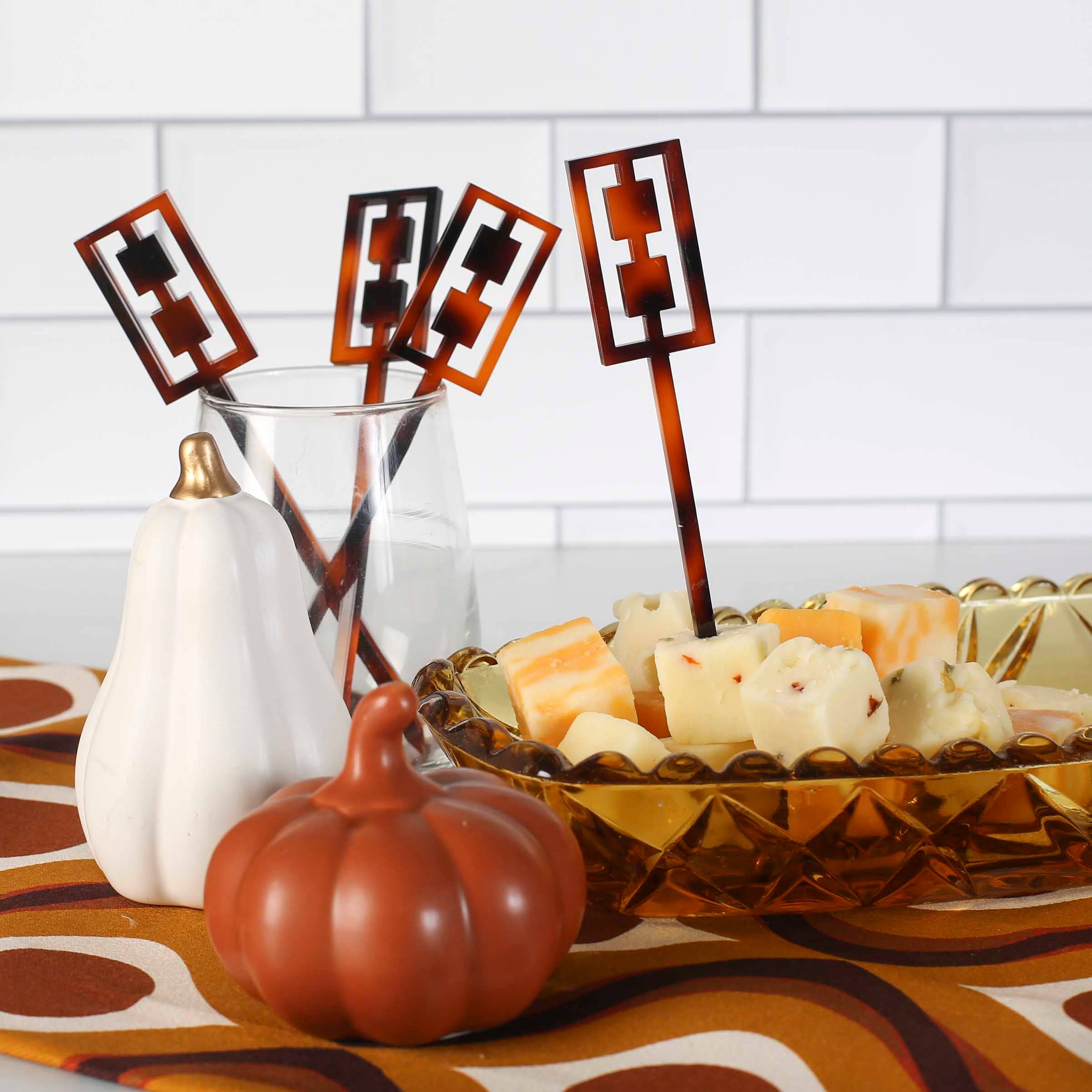 Bring a touch of mid-century modern style to your next gathering with these Tortoise Acrylic Cocktail Pick Set. The tortoise brown colored picks are perfect for adding charm to any appetizer or cocktail. Impress your guests with an elegant look at your next soireé. Makes a great gift for Housewarming, Newlyweds and Birthdays. Set of 6 luxury acrylic picks Approx 4.5" tall