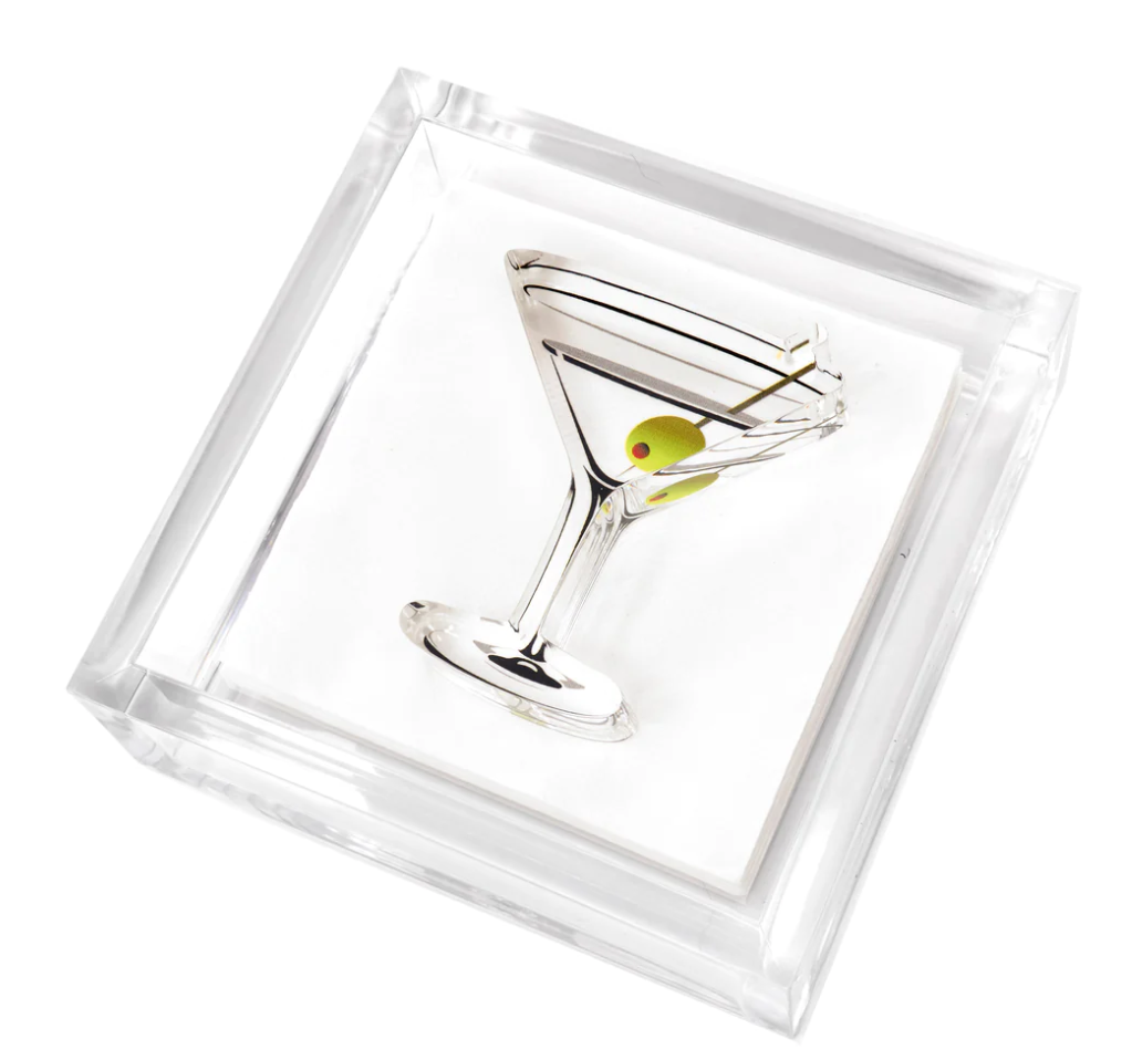 Expertly designed for any bar setting, the Lucite Frame is a stylish cocktail napkin holder that is sure to stand out at your next party. Its sleek design not only adds a touch of sophistication, but also keeps your cute cocktail napkins in place while you enjoy a glass of bubbly. Upgrade your bar with this must-have accessory.