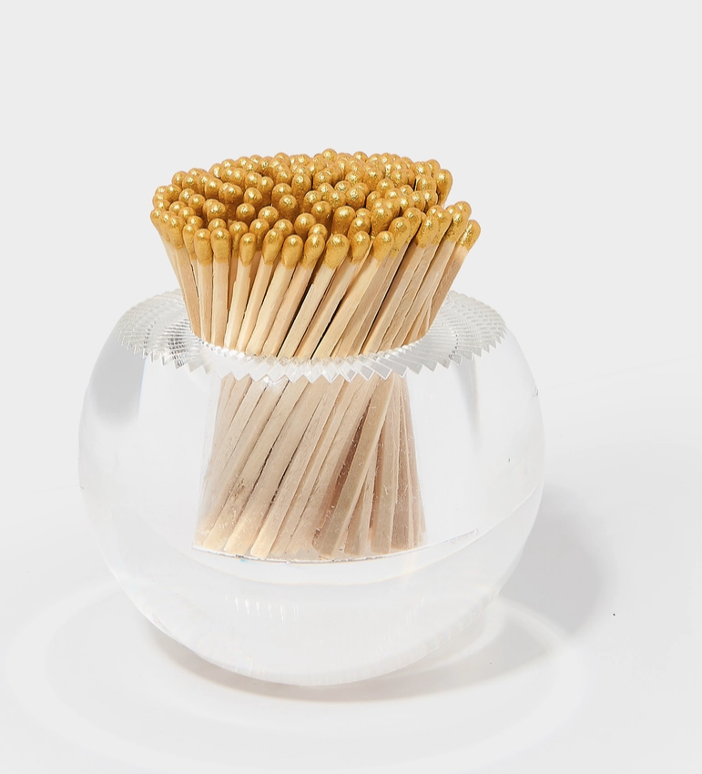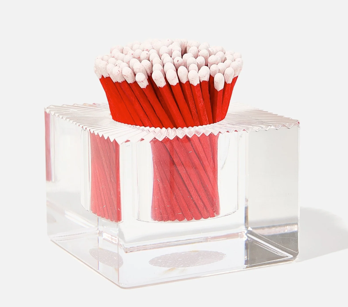 Get fired up with our Acrylic Match Striker! This acrylic match strike is the perfect accessory for your coffee table, desk, or any space that could use a little flair. It features a strike pad on the bottom and comes with 140 matches. Keep this baby ready for any occasion, let's get lit! - 3.5'' Diam x 3'' H - Includes 140 matches