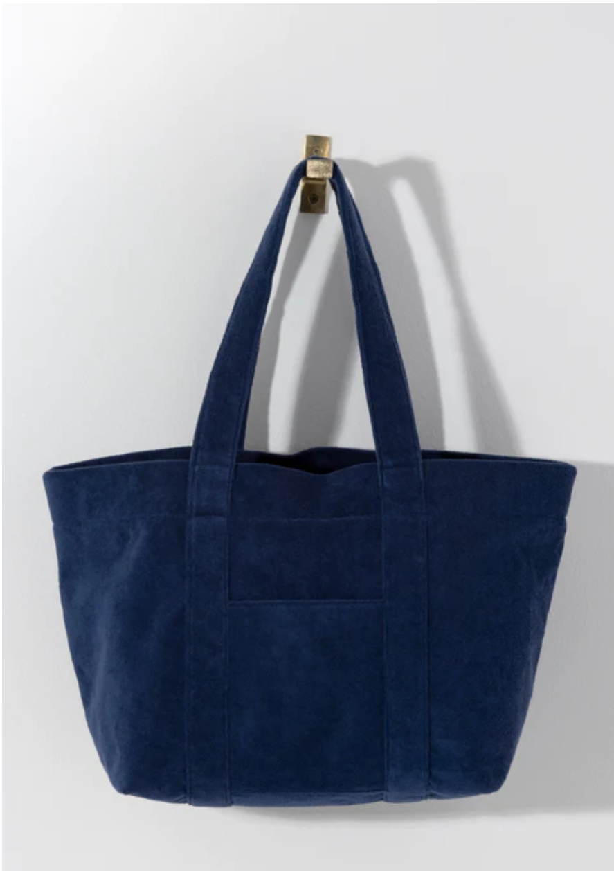 This is your new beach, lake and pool bag. It's so adorable with striped lining with a super soft terry cloth.