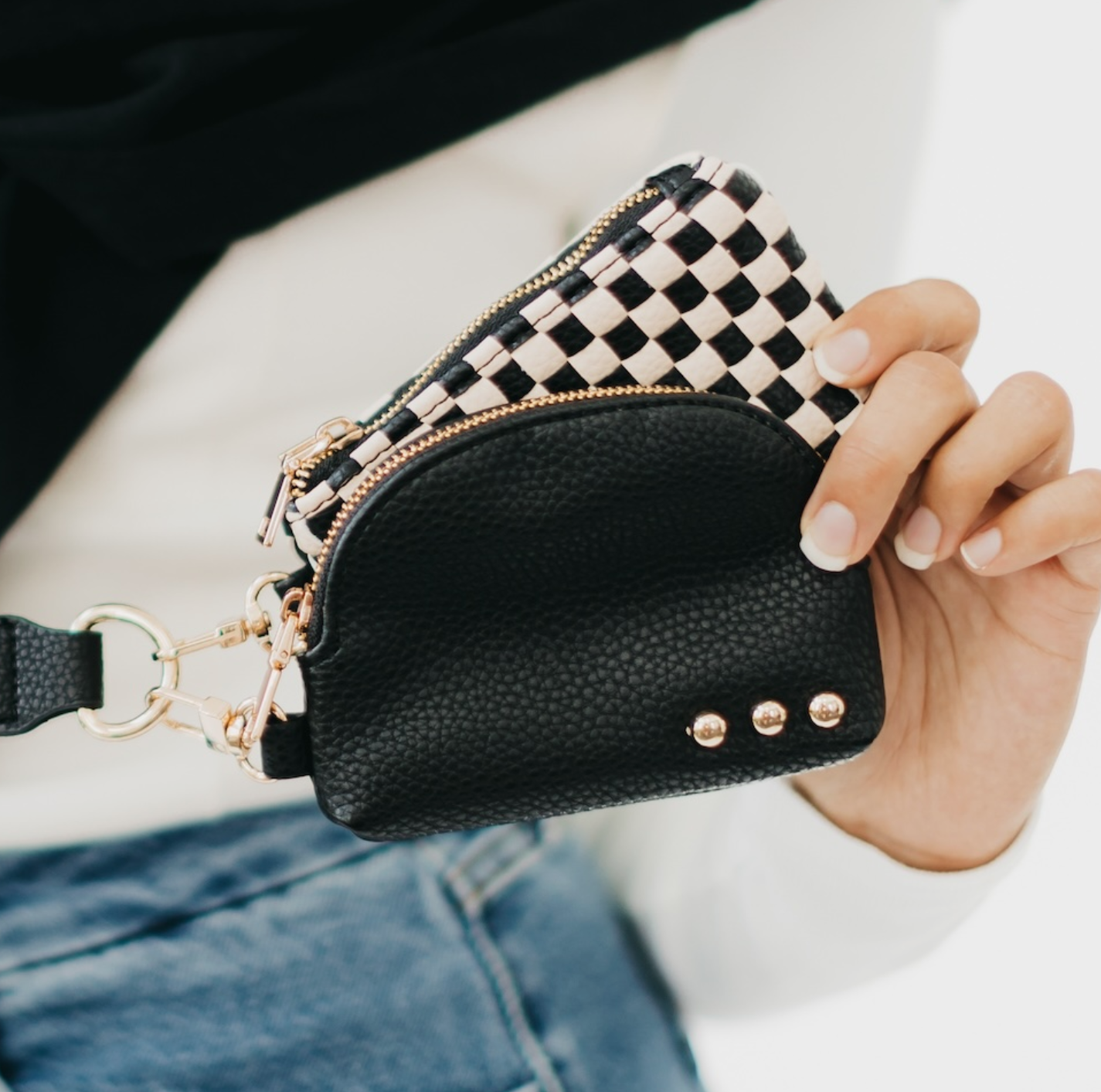 This hands-free and fashionable wristlet holds all your essentials - cash, cards, lip gloss, and more. Stay stylish and organized with Dolly!