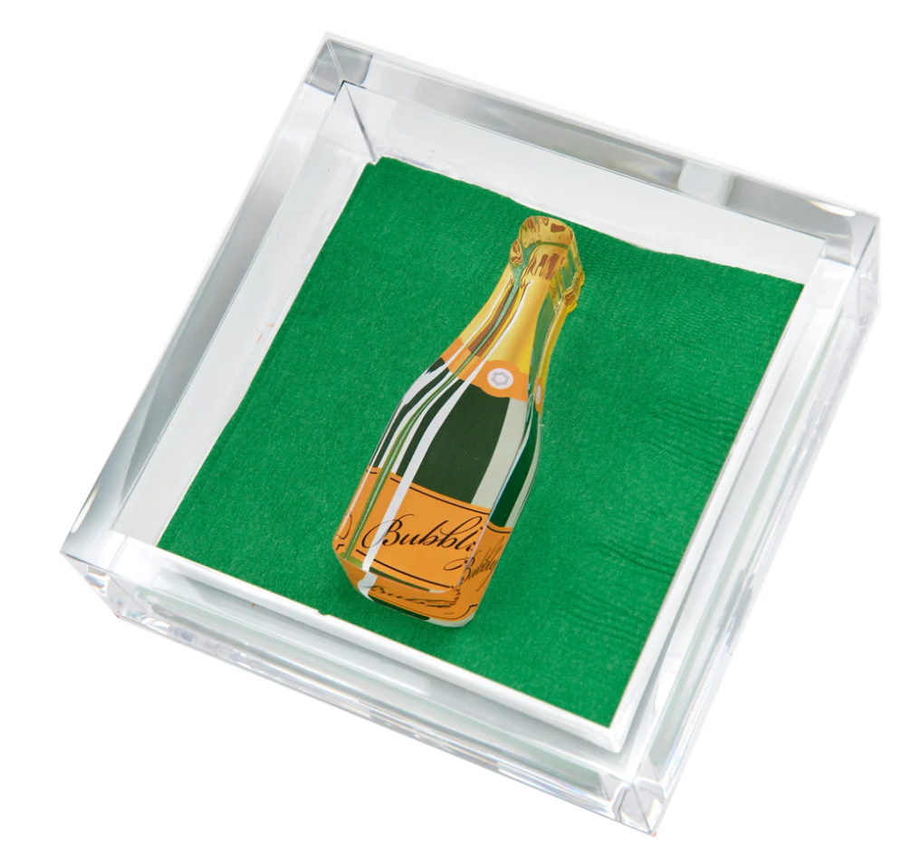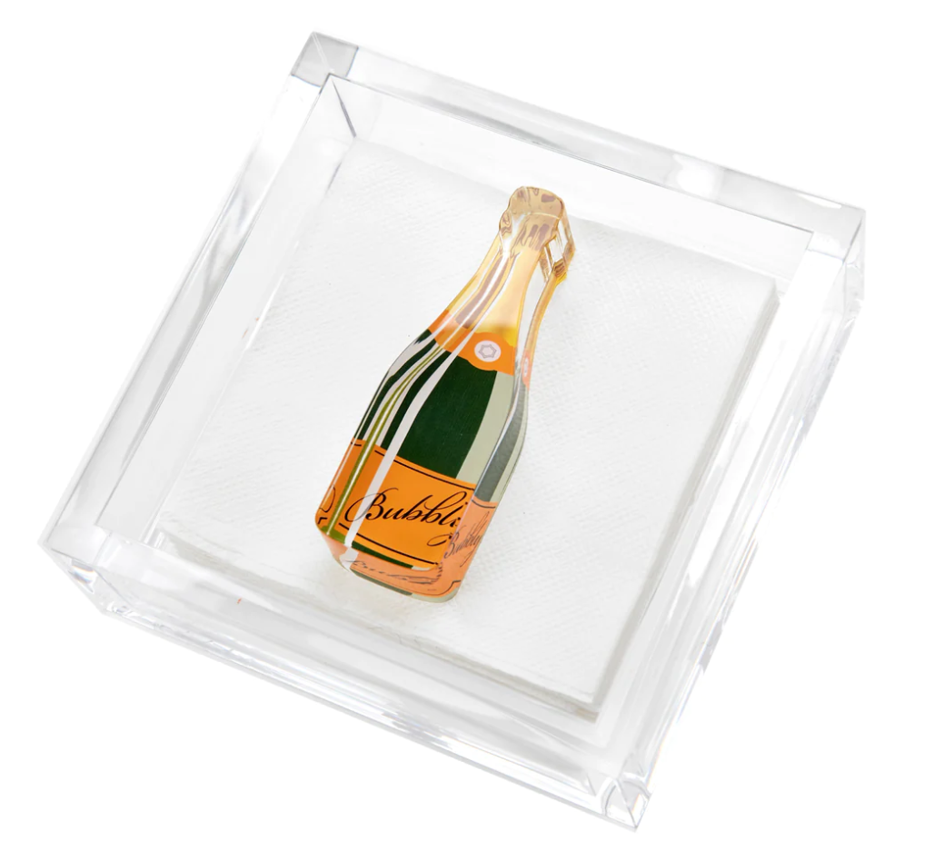 Expertly designed for any bar setting, the Lucite Frame is a stylish cocktail napkin holder that is sure to stand out at your next party. Its sleek design not only adds a touch of sophistication, but also keeps your cute cocktail napkins in place while you enjoy a glass of bubbly. Upgrade your bar with this must-have accessory.