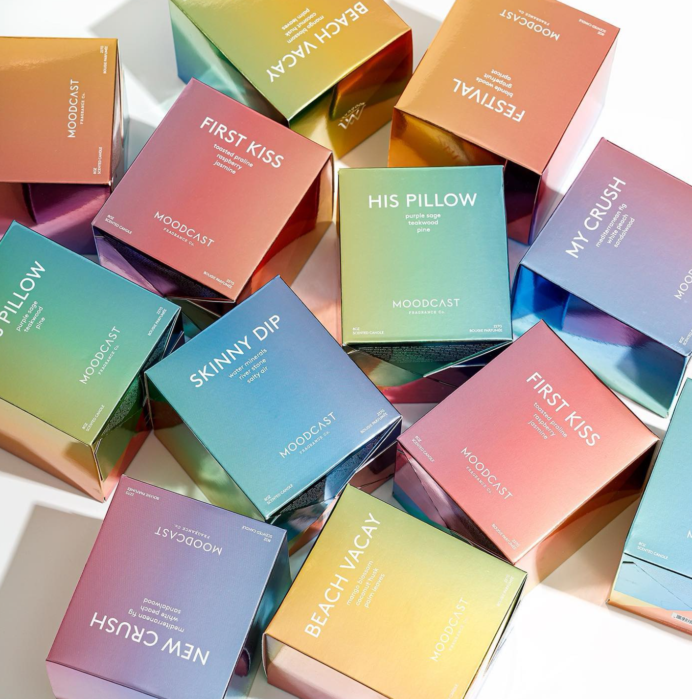 All packaging is in an iridescent glass bottle that will be a beautiful accent to a room.