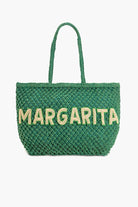 Handwoven from lush green raffia, this large tote bag captures the vibrant, tropical spirit of your favorite cocktail. The front applique "Margarita" design adds a playful, beachy vibe, while the braided shoulder handle keeps it effortlessly chic and easy to carry. A top magnetic closure ensures quick access and secure all your things.