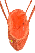Crafted from bold orange jute, this bag brings the party with its beaded spritz lettering that’s all about good vibes and golden hour energy. Inside, you’ll find a matching orange polyester lining and a handy zipper pocket to keep your essentials in check. The magnetic top closure makes it easy to grab and go, while the sturdy jute handle keeps things comfy and cute.