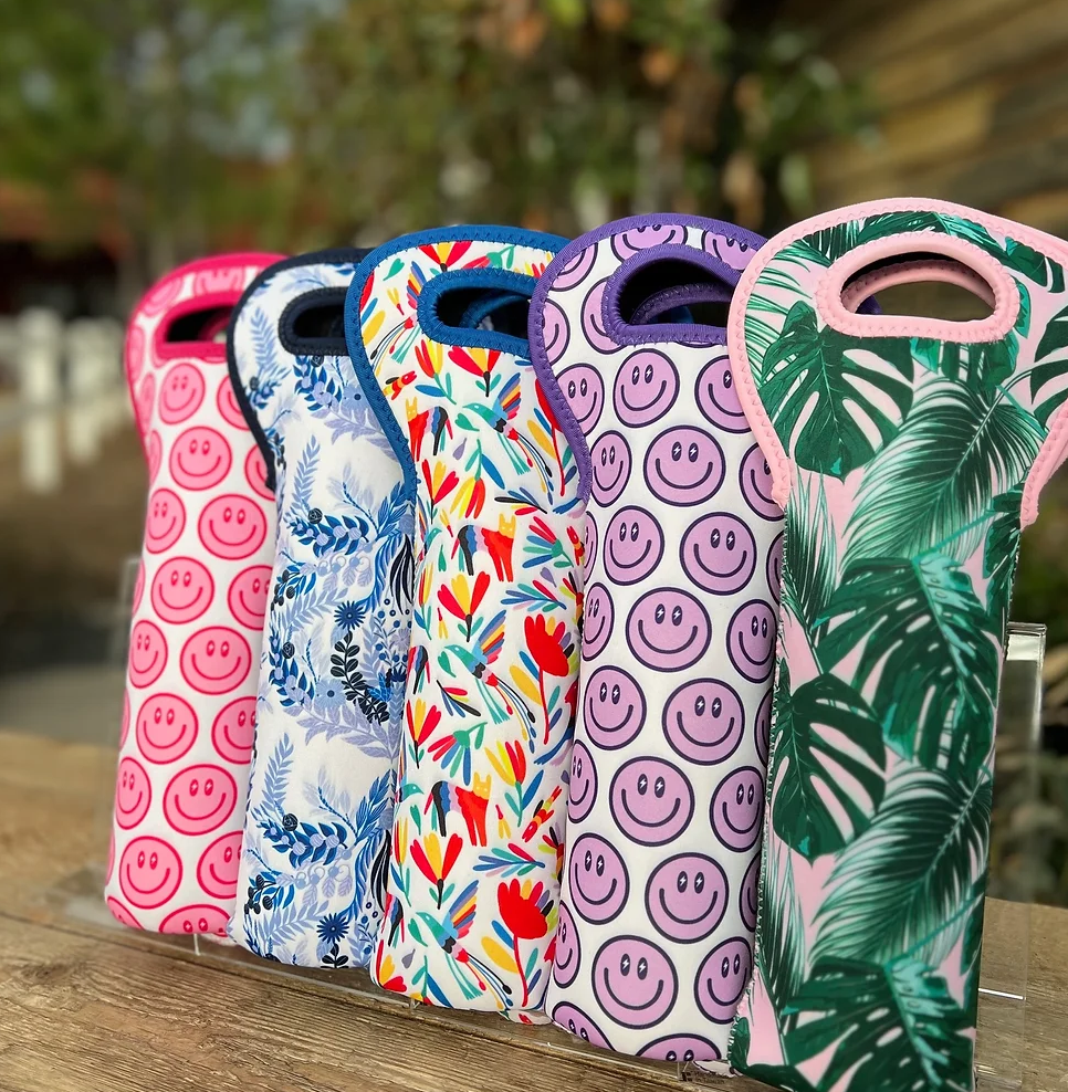 Our Wine Sleeves provide superior protection for up to a one-liter bottle of wine, thanks to their superior washable neoprene fabric. Make a statement at your next gathering with these eye-catching and vibrant wine sleeves, designed to keep your beverage safe and secure.