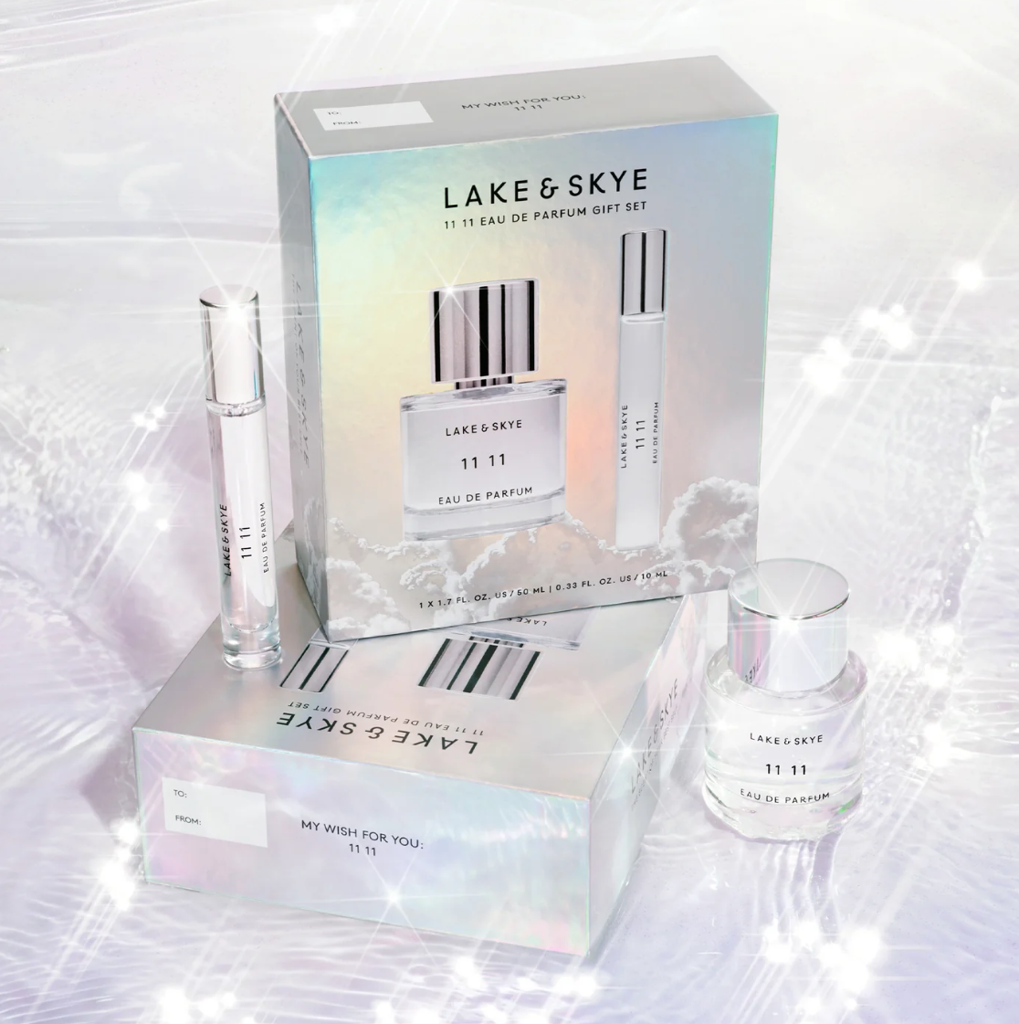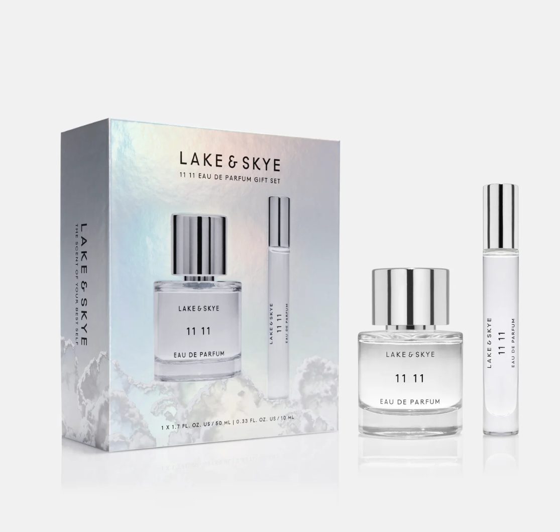 My Wish: The Limited Edition 11 11 Eau de Parfum Duo Gift Set includes one full size 50mL 11 11 Eau de Parfum and one 10mL travel size 11 11 Eau de Parfum.