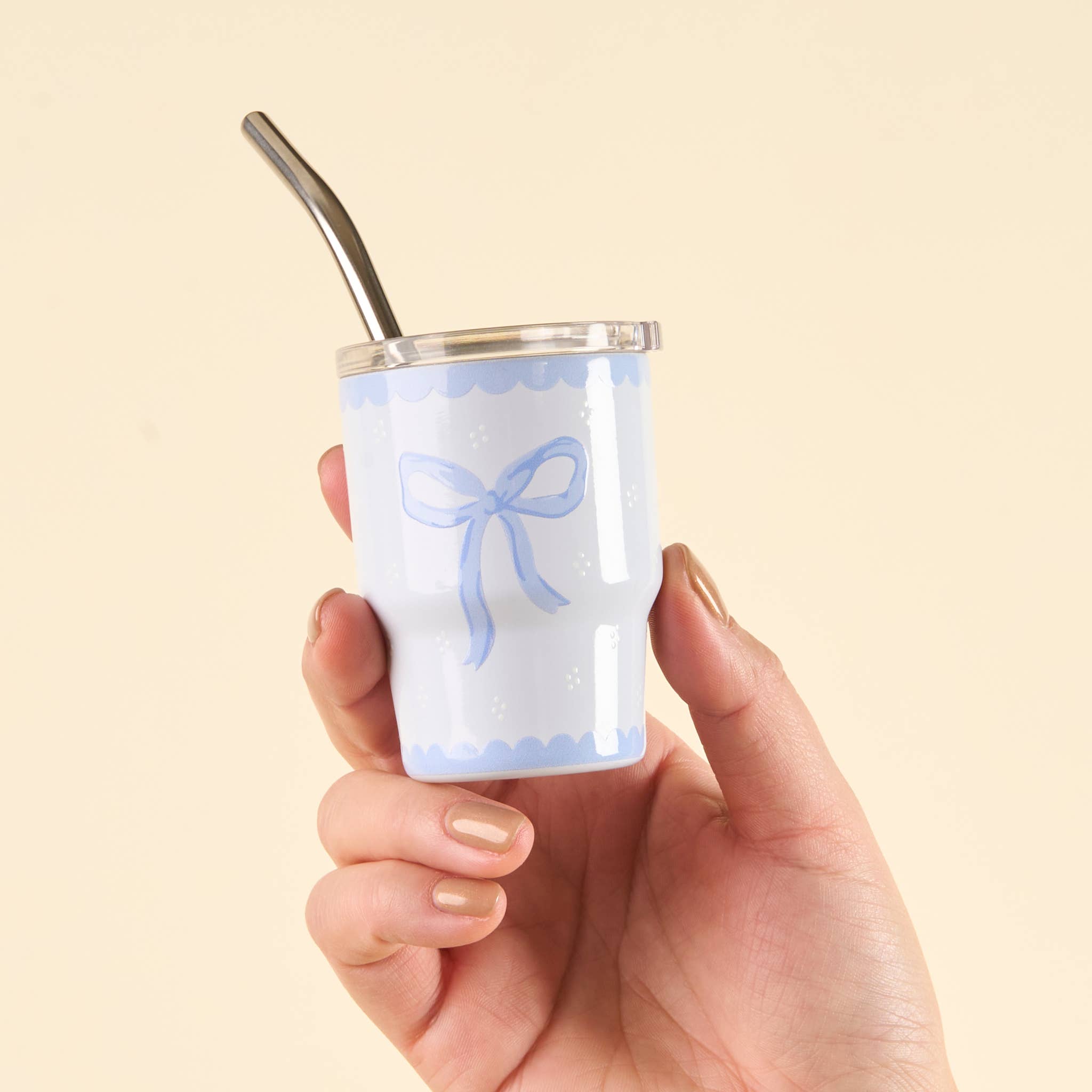 Your favorite tumbler- but teeny and tiny! Complete with a convenient plastic lid and straw, these tiny tumblers come in a bunch of cute and fun prints! Insulated for espresso, wellness, or tequila shots! Holds 2 fluid ounces Includes plastic lid + stainless steel straw Keeps liquids hot or cold Made of stainless steel.