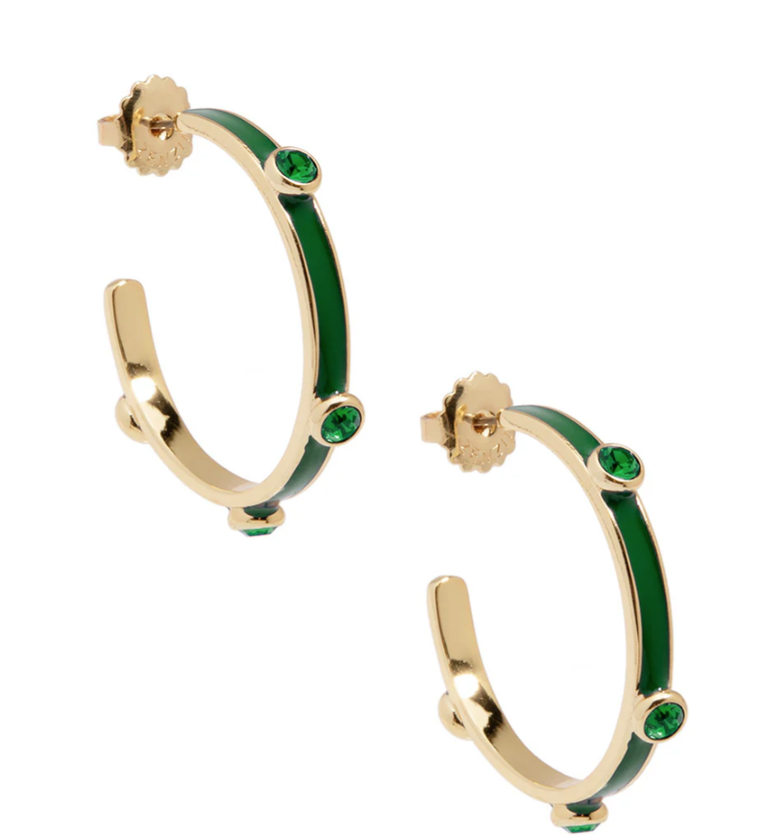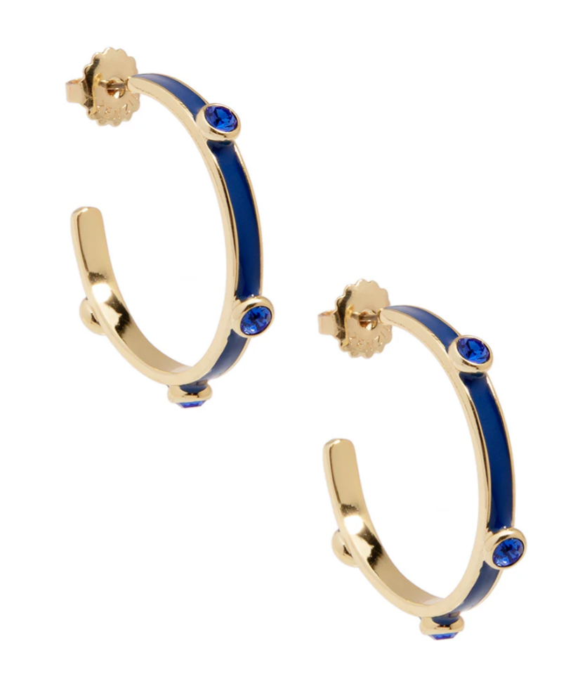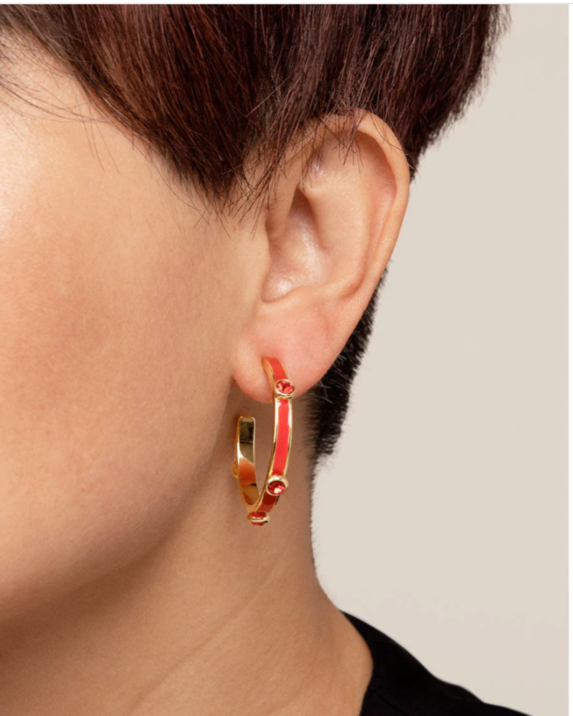 A hoop to remember! Bella features an oversized silhouette designed with colorful enamel coating and matching crystals.