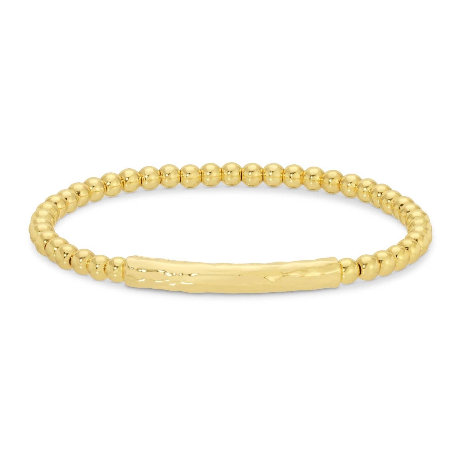 Add a touch of texture to your wrist stack with our beaded, 4mm stretch bracelet featuring a curved bar. The bracelet pairs well with our Pulley Tennis Bracelet.