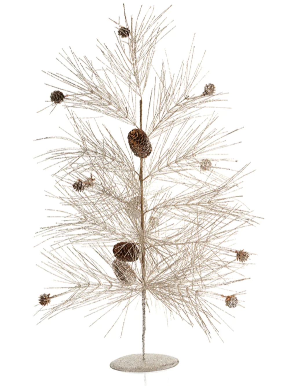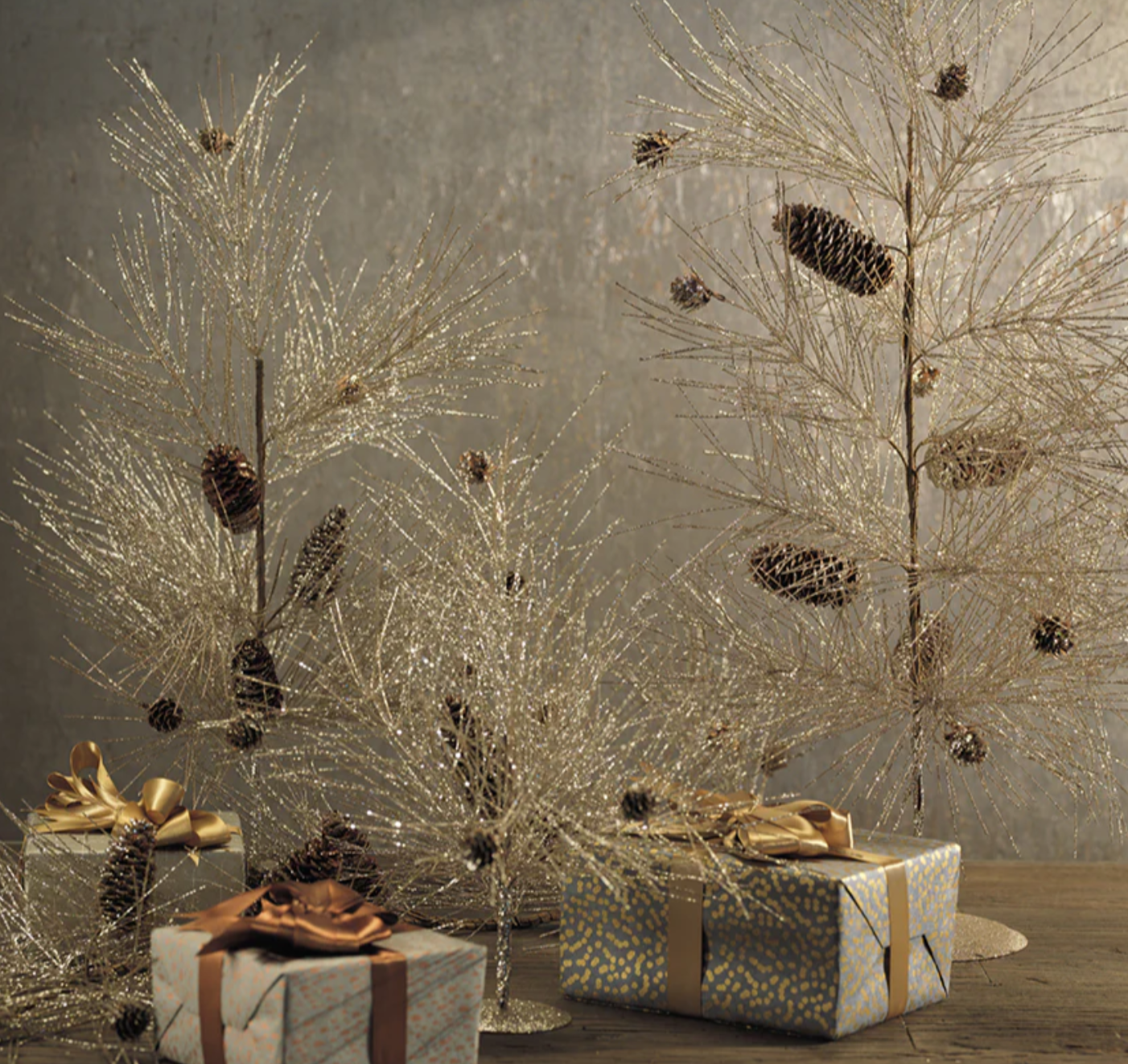 Beatiful champagne gold tree to accent all your holiday decor. Whether on your coffee table with decor items around or have two on your dining table, these trees will elevate your holiday home.