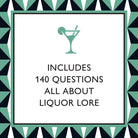 ENTERTAINING QUESTIONS: This vivid, compact box is filled with 140 trivia questions all cocktail lovers will enjoy! Questions encompass all sorts of boozy fun facts, from historical and pop culture references, to recipe and ingredient specifics, cocktail lore, and more!