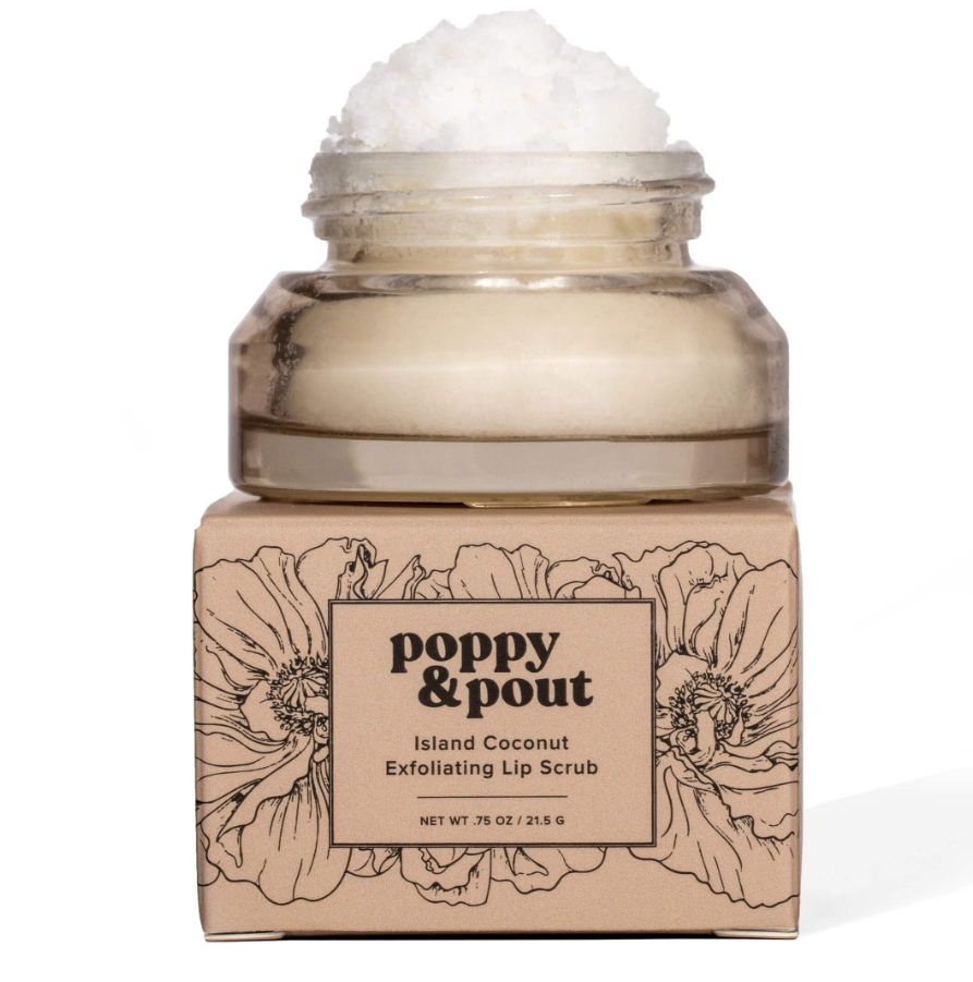 Poppy & Pout's Exfoliating Lip Scrubs are the perfect way to prep your pout for smooth, hydrated lip balm application. We use a clean combination of natural ingredients to help clean and gently exfoliate your lips. Our Island Coconut Lip Scrub smells just like those summer months spent on the beach and keeps your lips soft and kissable for hours!