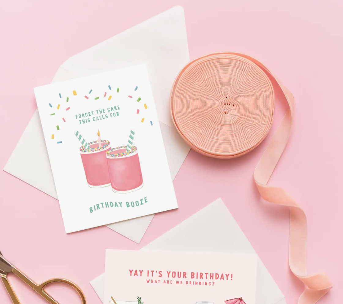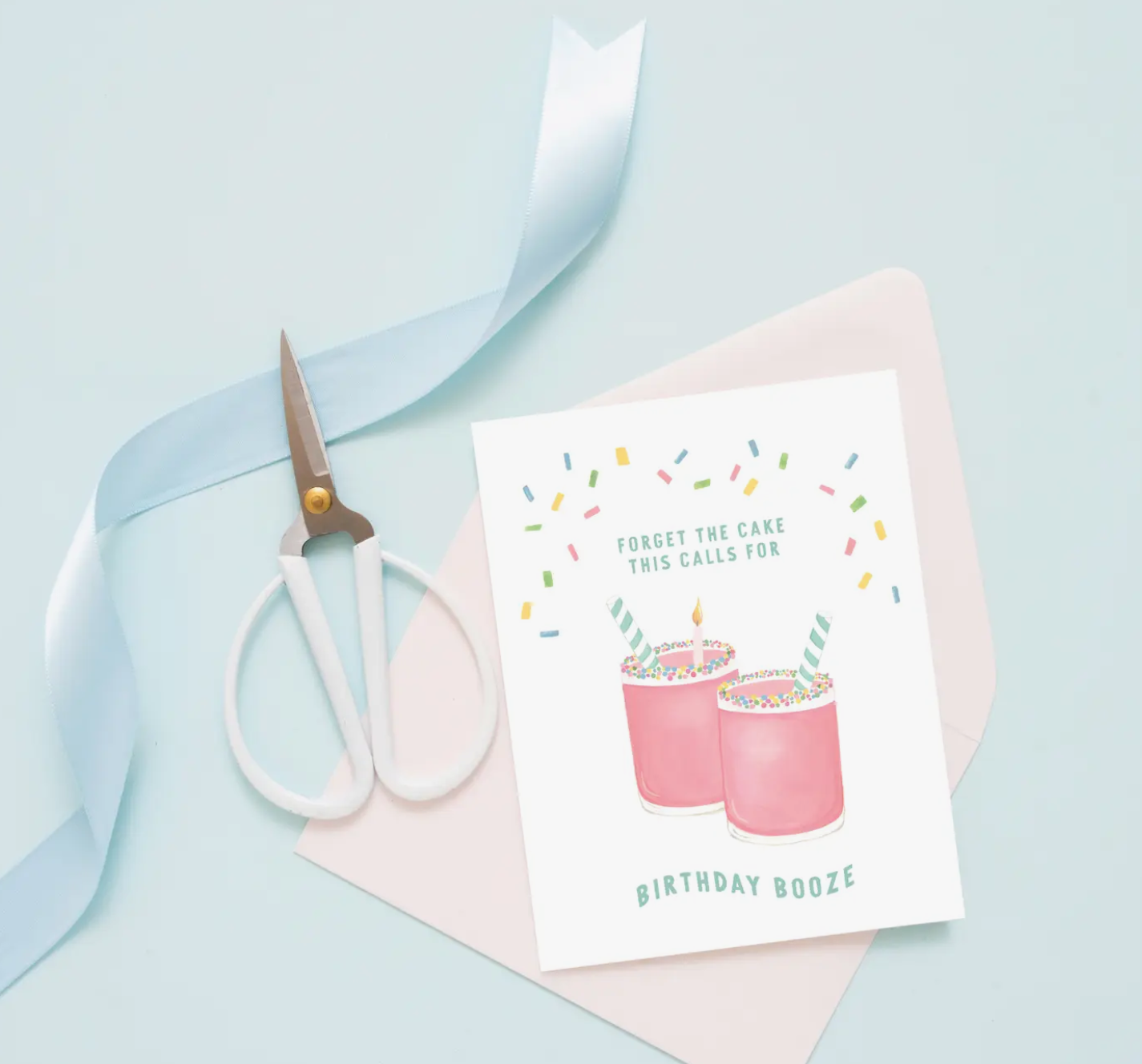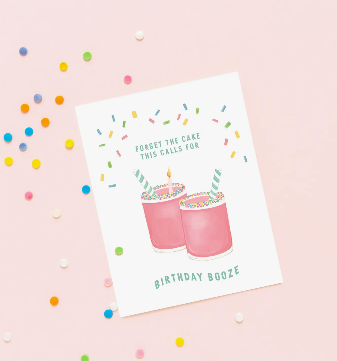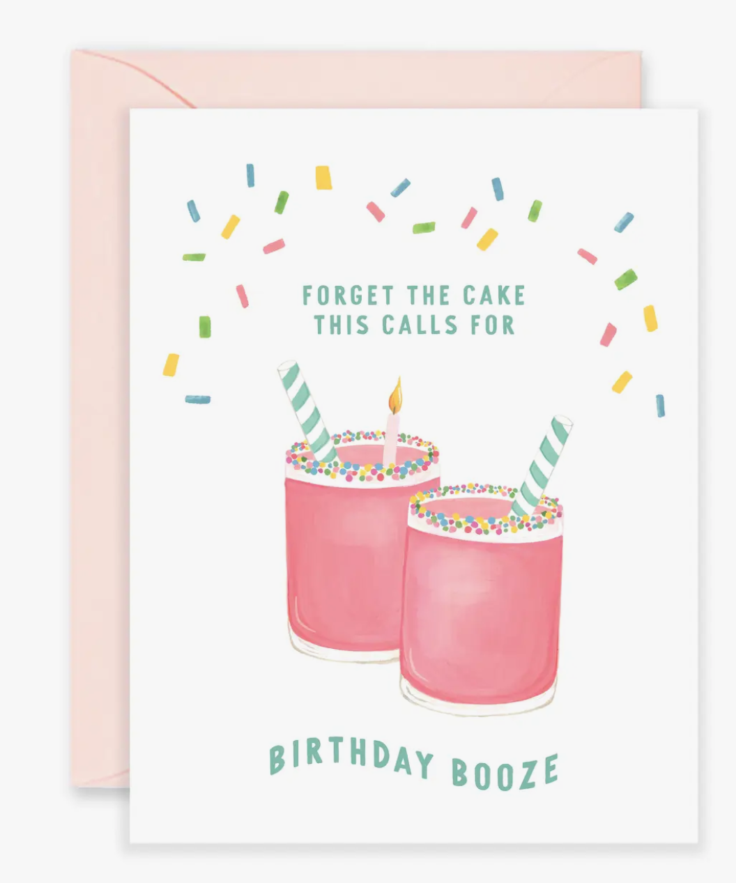 Birthday cake is nice and all but birthday cocktails (WITH sprinkles) are better! Wish your BFF a happy birthday with this celebratory card that reads "Forget the cake! This calls for birthday booze!"