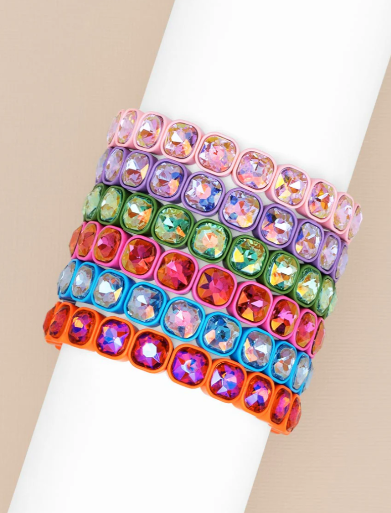 The Liora Bracelet shines bright with oversized faceted crystals in juicy, saturated tones. Radiant and ready to stack, this style brings statement energy with a light, flexible feel.
