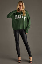 This Olive Green "Merry" sweater is a perfect blend of cool and fun!