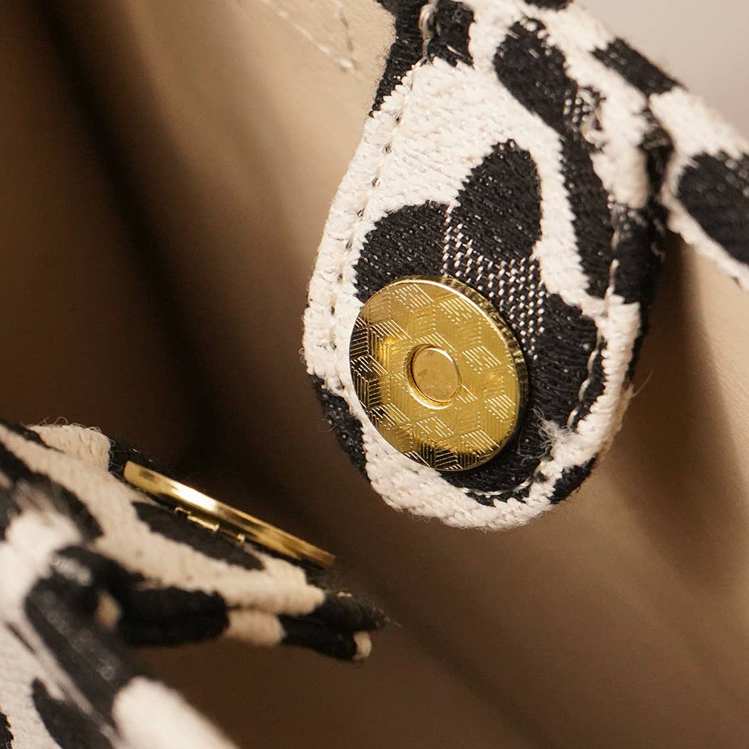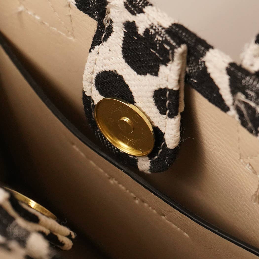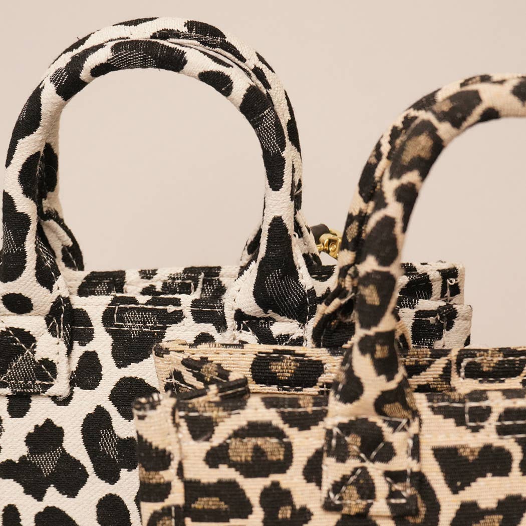 White and Brown Leopard Tote Bag - Leopard print bag - Able to wear as handbag/shoulder bag/crossbody bag - with Removable Crossbody Strap - Magnetic Closure - with a Slip Pocket Bag Size - Approx. 9" W x 6.5" H x 3" D Strap Size - 38 inches
