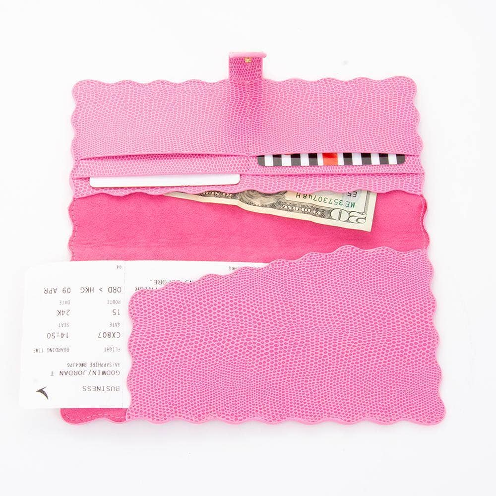 Our travel wallet is not only for travelers! It features 4 small card holders for IDs and credit cards, 1 big compartment for your cash, and 1 half pocket for plane tickets, receipts, or coupons. It is the perfect grab and go wallet that you can even slide into your smallest purse due to its thin design. *4" x 8"