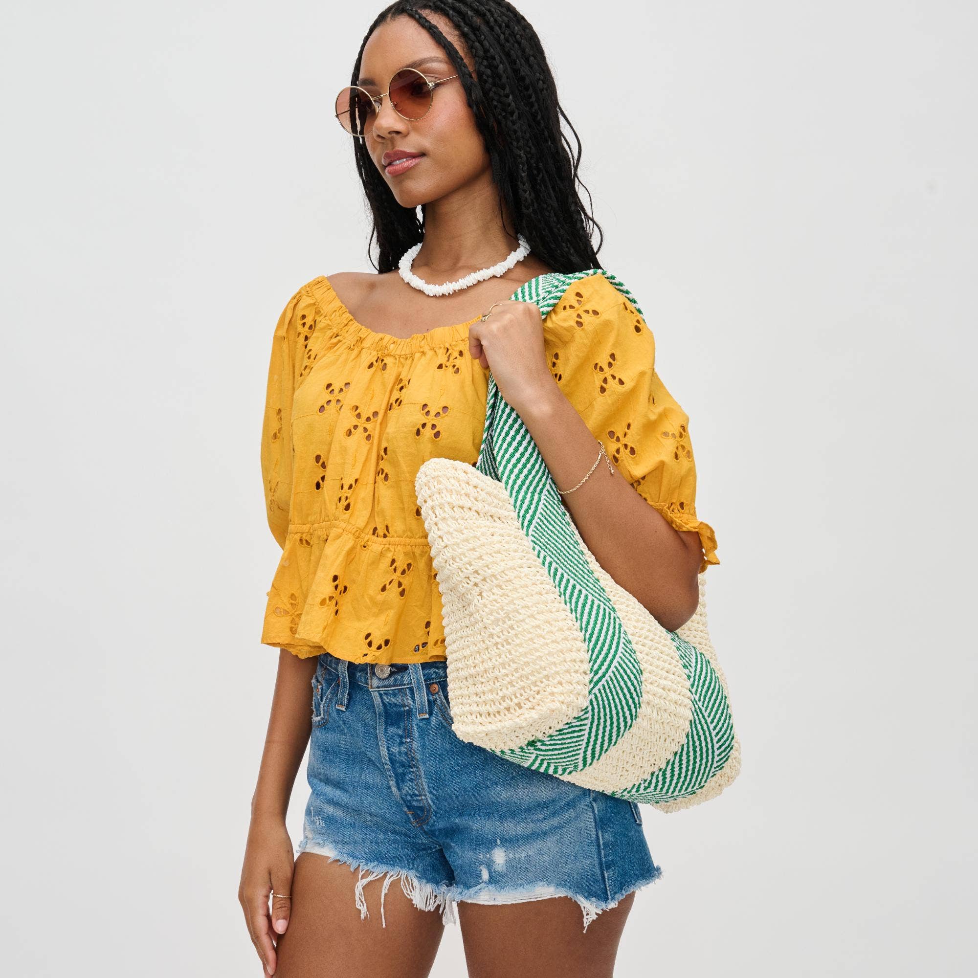 Woven Whimsy Awaits! Meet our Straw Lorena Tote, where artistry and practicality intertwine. The meticulously crafted woven design, complemented by contrasting details, turns this bag into a fashion-forward statement.