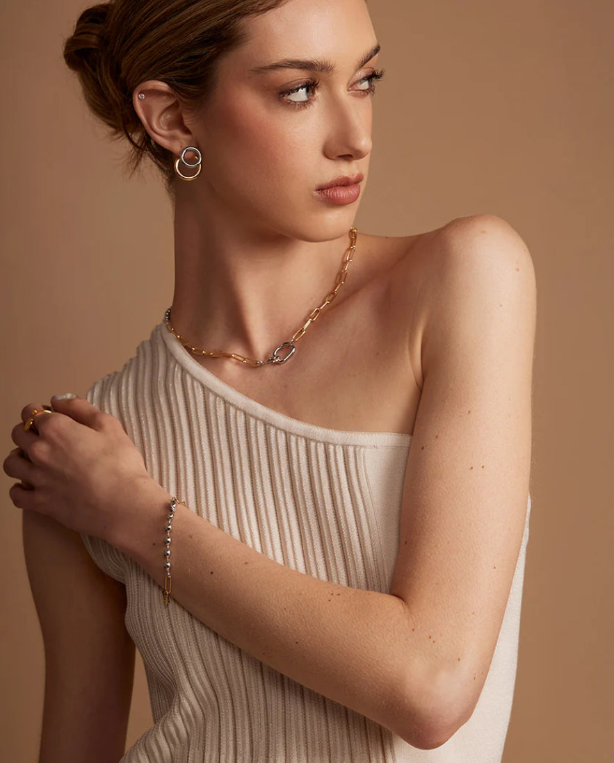 Two toned Beaded Mixed Link Bracelet