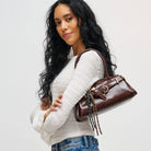 Elevate your ensemble with the Vienna Crossbody, a chic fusion of style and functionality. Designed for the modern woman, this handbag seamlessly transitions from day to night. Its sleek silhouette adds a touch of elegance, while the detachable strap offers versatile carrying options—from casual to sophisticated. Crafted with ethically sourced materials, the Vienna Crossbody embodies your commitment to responsible fashion. Spacious enough to hold essentials yet compact for effortless handling, it showcases thoughtful details like chic tassels and gold-tone accents that enhance its contemporary appeal. Make a statement that resonates with your values. Embrace the Vienna Crossbody today.