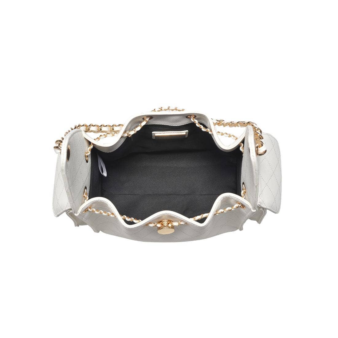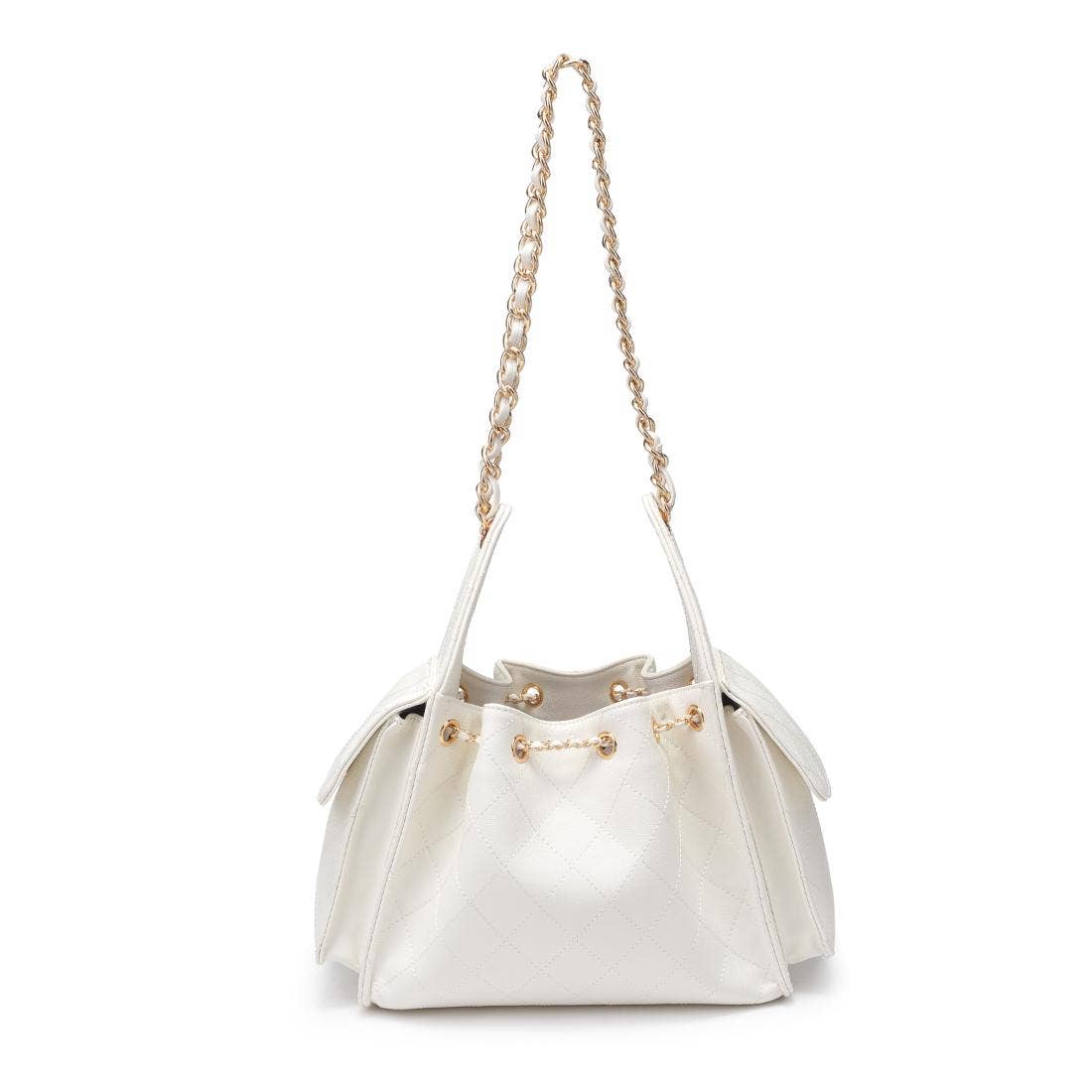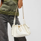 *Item Type: Hobo *Material: Vegan Leather *Closure: Drawstring *Exterior Details: Gold Hardware, 2 Side Pockets, Stitch Detail, Chain Strap *Interior Details: Fabric Lined, 1 Zip Pocket